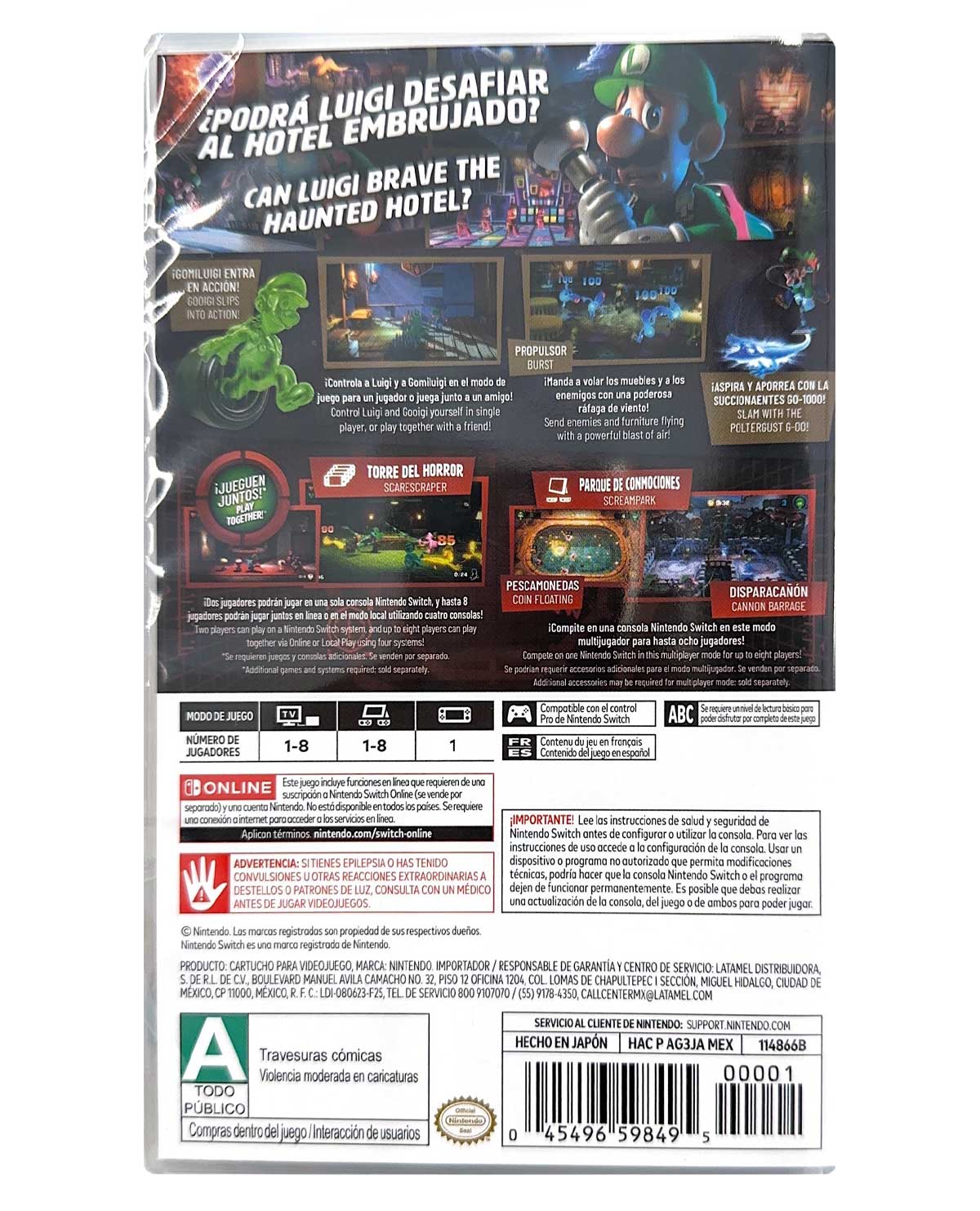 - Atrapa fantasmas y resuelve rompecabezas para rescatar a Mario y sus amigos en el hotel El Gran Descanso Real.