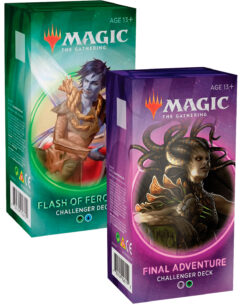 Para los no iniciados, los Challenger Decks son mazos individuales de 75 cartas orientados al juego estándar para el jugador de Friday Night Magic. Cada mazo viene con un mazo principal de 60 cartas y un sideboard de 15 cartas y está diseñado para ser jugable y competitivo a nivel local desde el primer momento. Todas las tarjetas se habrán impreso previamente en Estándar y son legales en Estándar.
