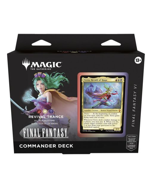 Descubre el cruce definitivo entre dos universos icónicos con el Commander Deck “Revival Trance” de Magic: The Gathering, inspirado en el mundo de Final Fantasy. Diseñado para brindar una experiencia equilibrada y emocionante, este mazo preconstruido te permite invocar héroes emblemáticos, lanzar hechizos potentes y desatar mecánicas inspiradas en la saga RPG que marcó generaciones.