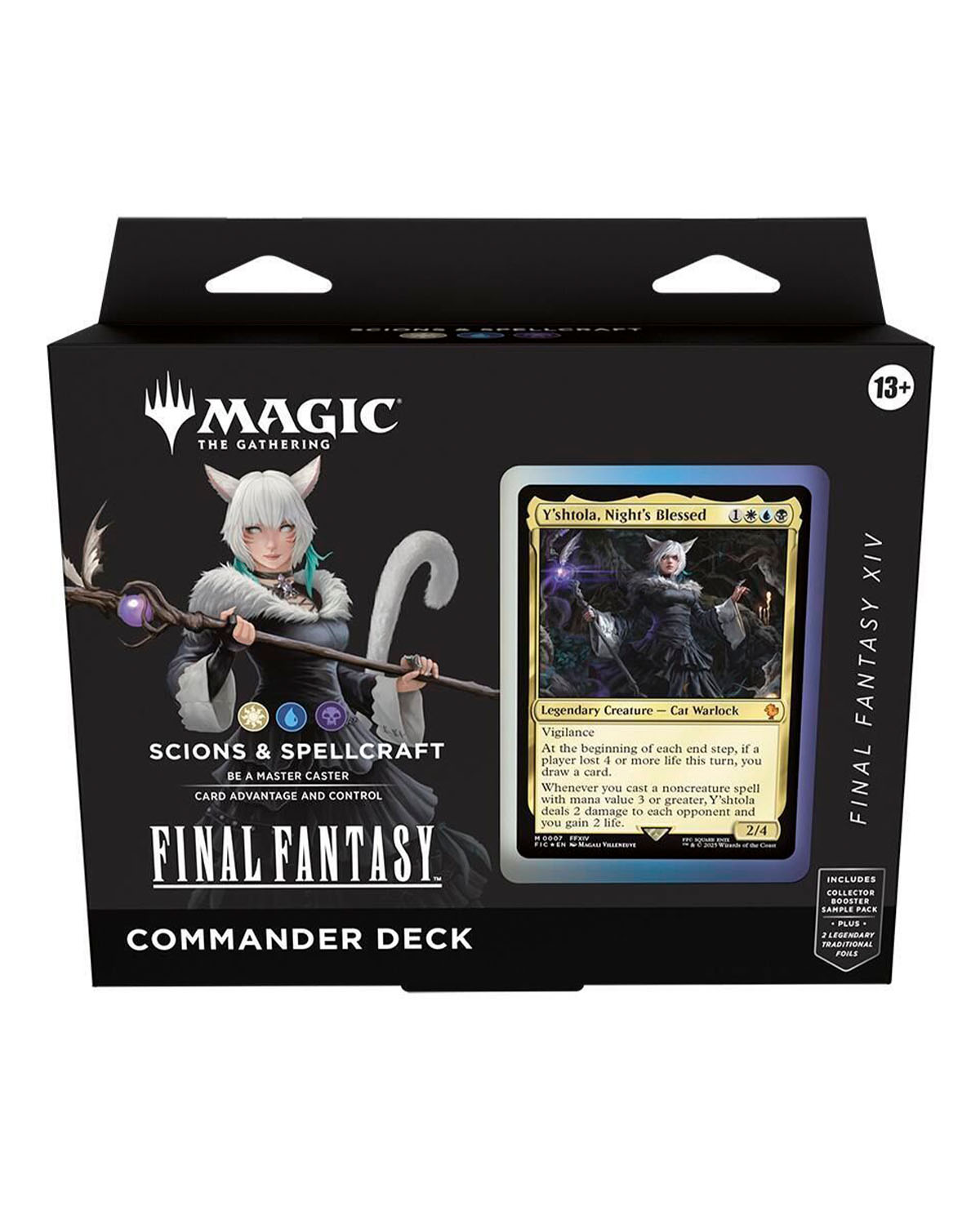 - Comandante principal: Y’shtola, Night’s Blessed, una hechicera que recompensa el uso de conjuros no criatura con daño y robo de cartas.