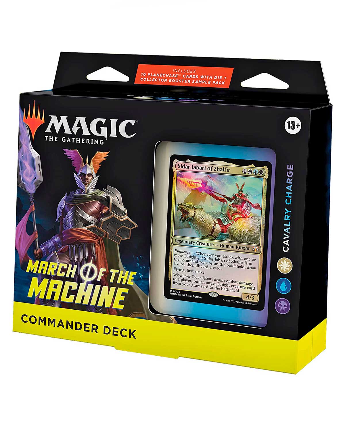 - Carga de Caballería: Mazo March of the Machine Commander de 100 cartas listas para jugar con 2 cartas legendarias de papel tradicional y 98 cartas sin papel de aluminio.