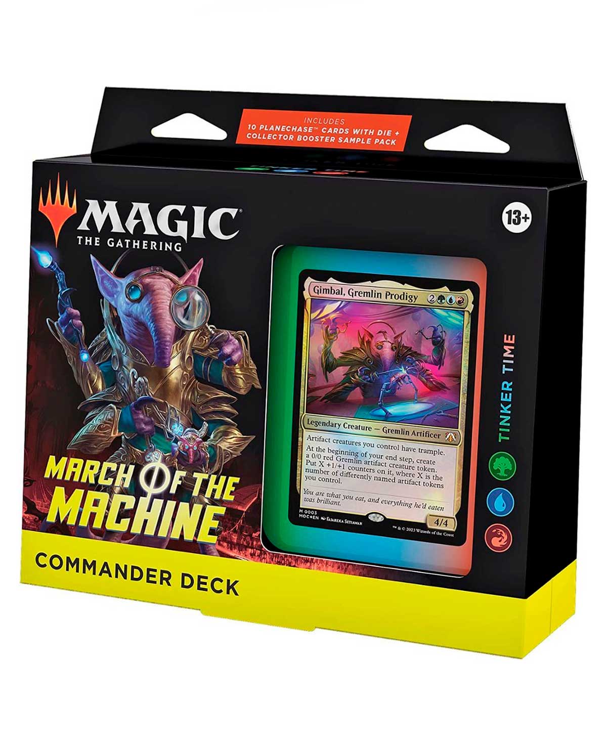 - Tinker Time: Mazo March of the Machine Commander de 100 cartas listas para jugar con 2 cartas legendarias de papel tradicional y 98 cartas sin papel de aluminio.