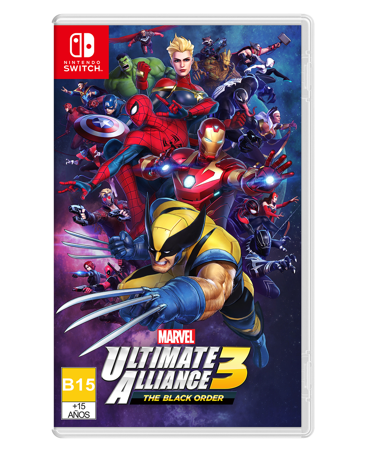 ¡Comienzala búsqueda de las Gemas del Infinito en MARVEL ULTIMATE ALLIANCE 3: The Black Order, un juego de rol de acción exclusivo para Nintendo Switch! Crea tu equipo definitivo de superhéroes de Marvel con miembros de los Avengers, los Guardianes de la Galaxia, el Universo Spiderman, la Patrulla-X y muchos otros, y plántales cara a las fuerzas del mal.