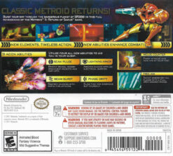 El arsenal de Samus Aran ha sido mejorado con nuevos movimientos y habilidades que serán de gran ayuda a la hora de hacer frente a las sorpresas mortales que la aguardan. Esta intensa aventura de desplazamiento lateral es ideal como primera inmersión en el mundo de la franquicia Metroid, pero también encantará a los fans más veteranos de la serie. Estará disponible únicamente para la familia de consolas Nintendo 3DS.