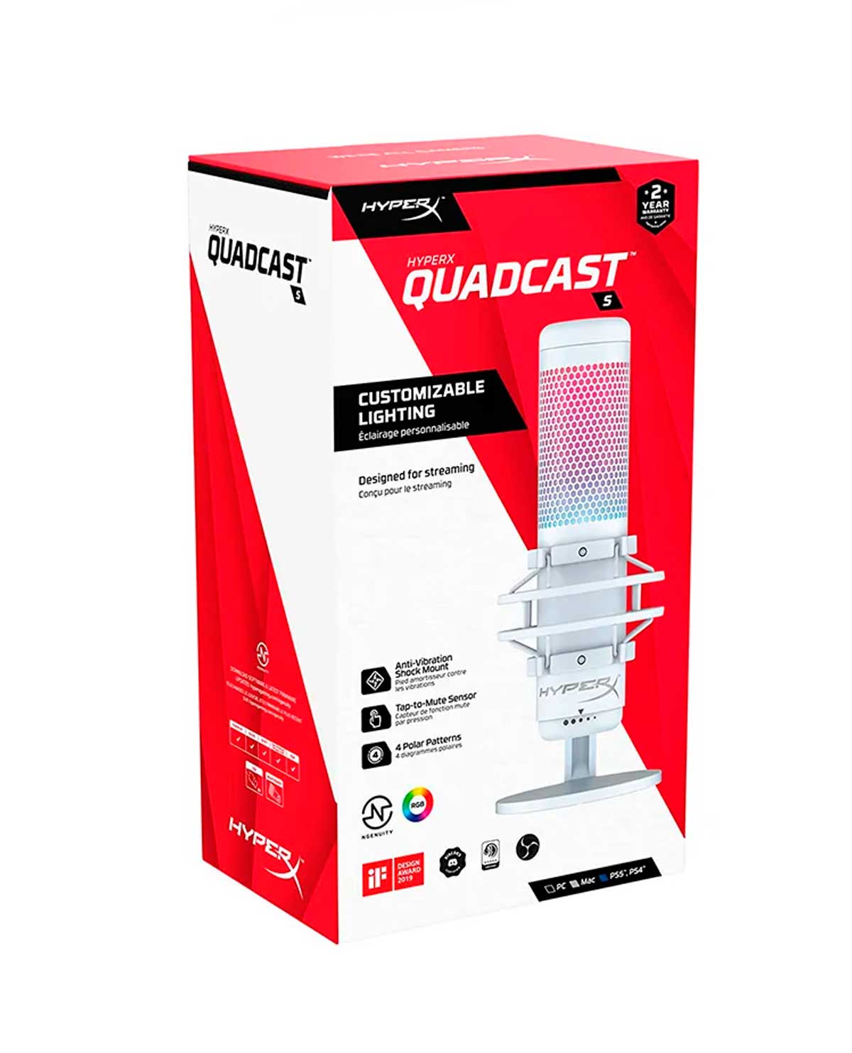El HyperX QuadCast S es un micrófono de condensador USB que suena genial y se ve genial. La iluminación RGB sumamente impresionante y los efectos dinámicos agregarán estilo y estilo a cualquier transmisión o configuración, y se pueden personalizar a través del software HyperX NGENUITY.