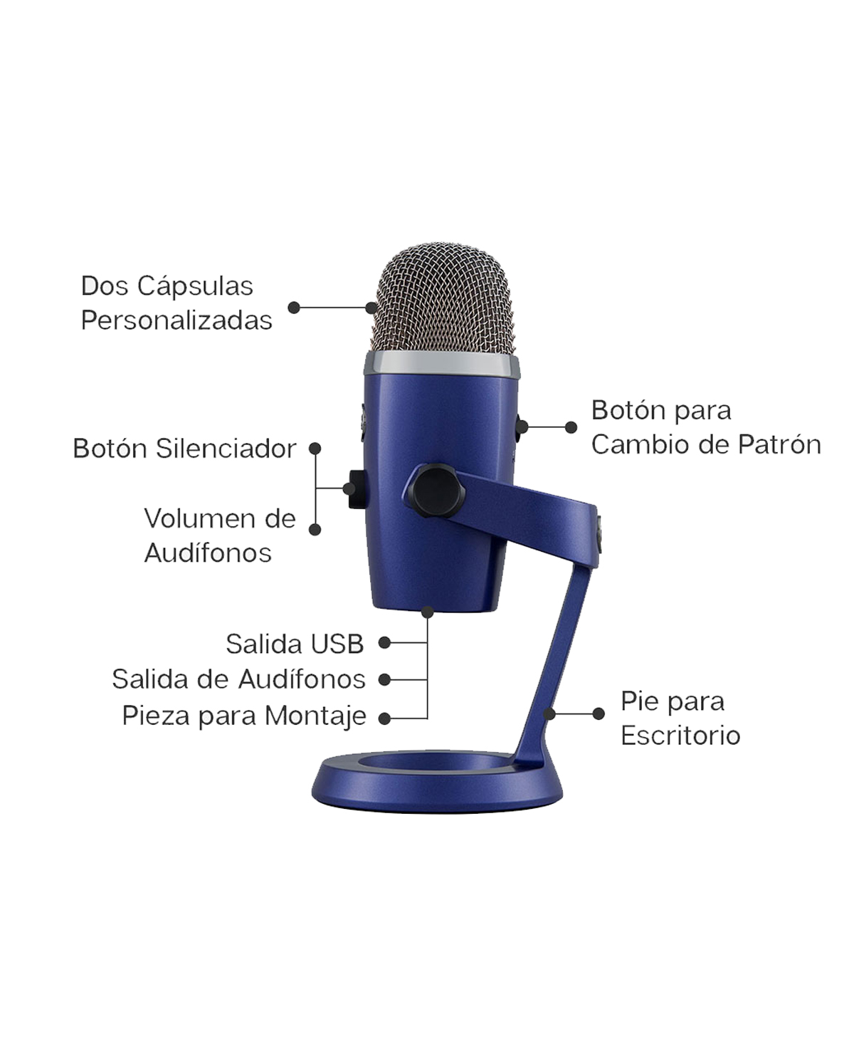 Yeti Nano es un micrófono USB de calidad superior diseñado para actividades de retransmisión de podcast con calidad radiofónica, producciones de YouTube™, retransmisión de partidas, Skype™/VoIP y trabajos de voiceover. Inspirado en el #1 en ventas, el micrófono Yeti de Blue, Yeti Nano ofrece una calidad de sonido de 24-bit, un diseño compacto y funcionamiento plug ‘n play para una retransmisión instantánea con su PC/Mac. Los acabados de primera calidad lucen geniales ante las cámaras y en cualquier sobremesa. Con una salida de auriculares sin latencia y controles para volumen de auriculares, muteo del micro y selección de patrón, Yeti Nano es el micro esencial para los modernos broadcasters.