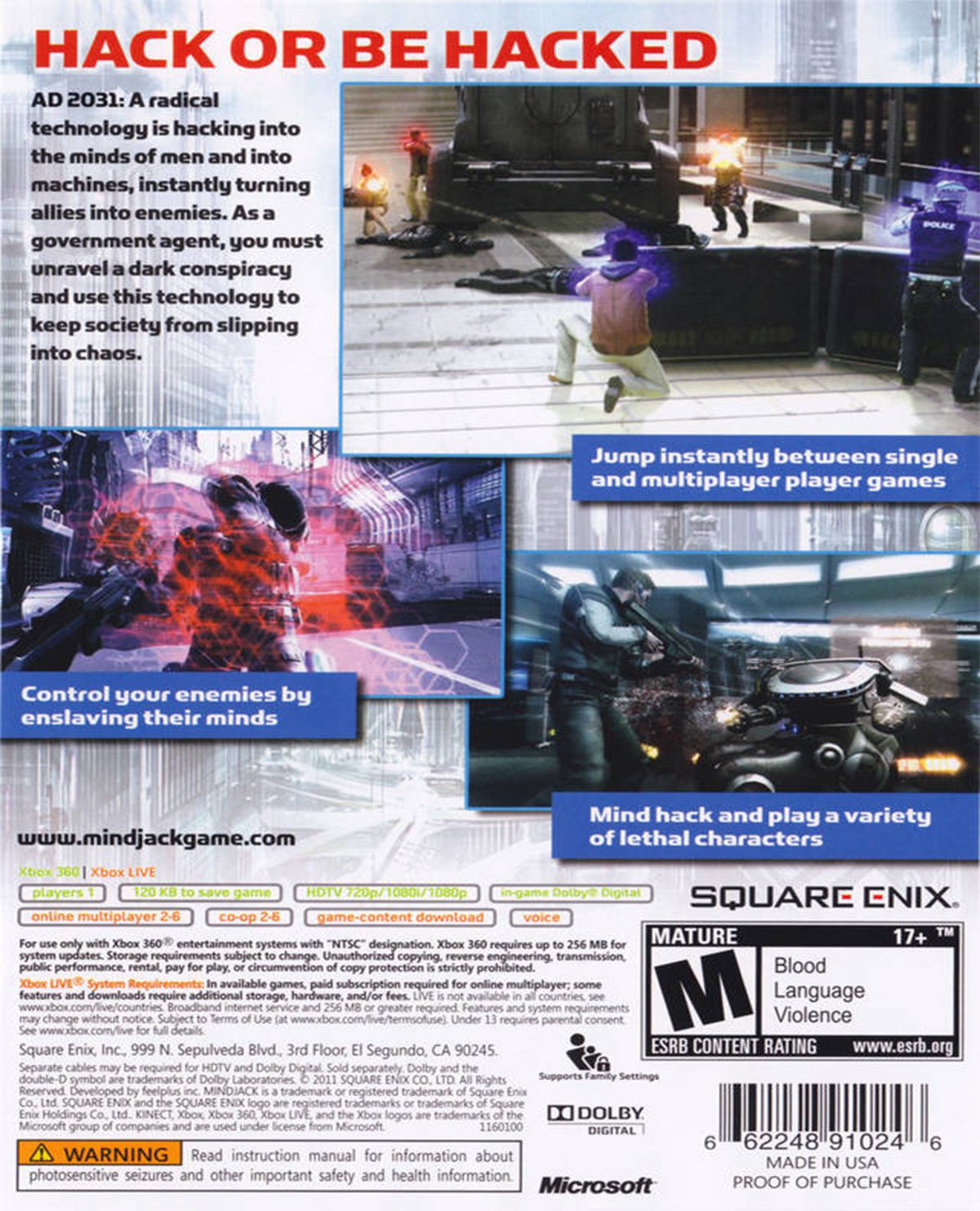 Basándose en los gráficos y la maestría narrativa de ambos de Square Enix y feelplus, MINDJACK ofrece una experiencia única que arroja a los jugadores en un campo de juego revolucionario donde las transiciones de una campaña de participación en solitario sin problemas a emocionar, juego multijugador cooperativo.