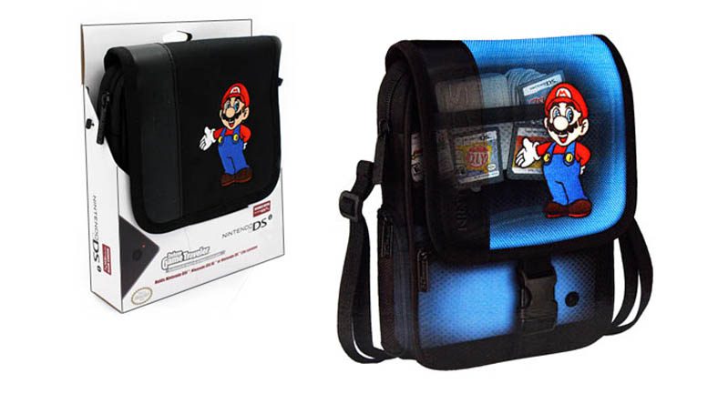 Estuche con para consola Nintendo DS con espacio para cargadores y cartuchos de juego, con diferentes compartimentos.