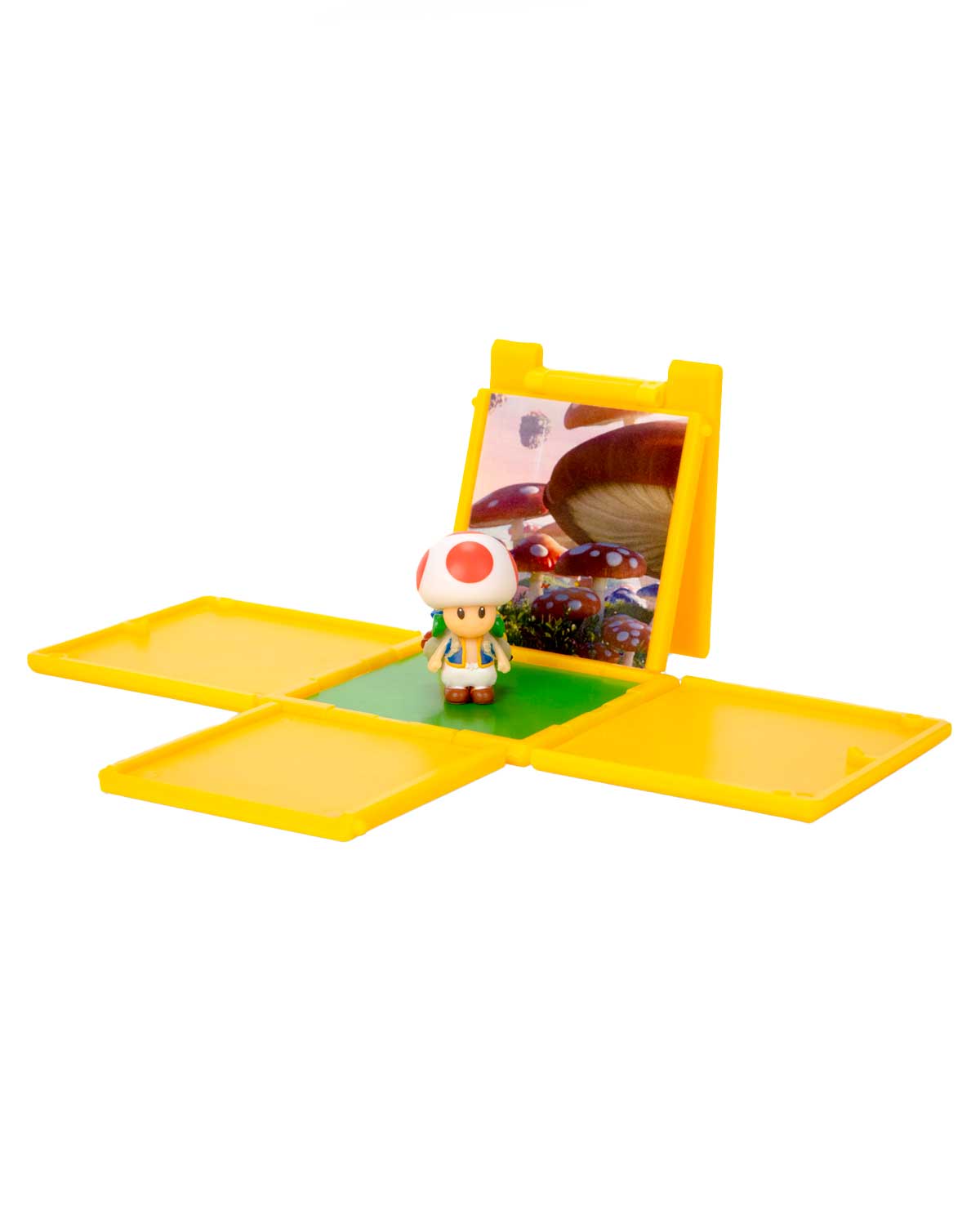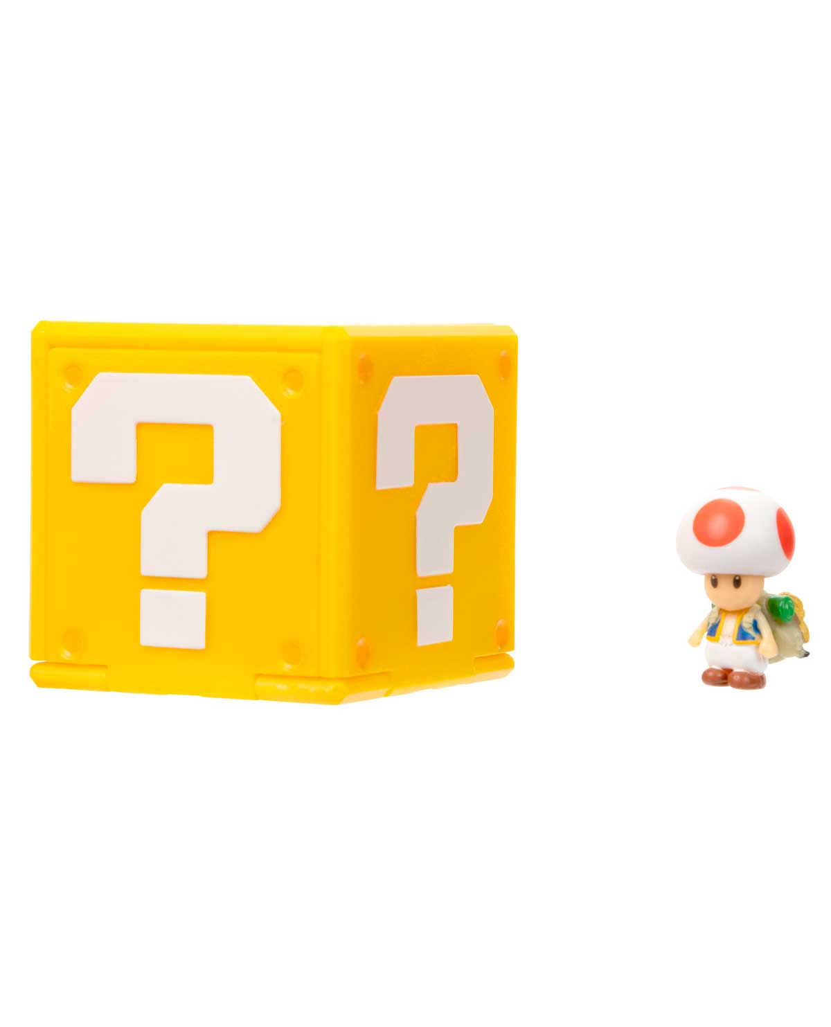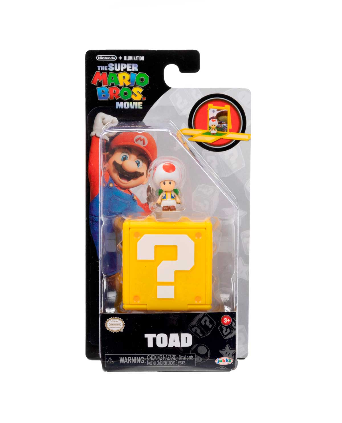 Colecciona tus personajes favoritos en la mini línea The Super Mario Bros. Movie. ¡La figura de Toad de 1.25” pulgadas (3 cm) viene con un bloque de preguntas que se abre para revelar una imagen de fondo de The Mushroom Kingdom para jugar y mostrar diversión! ¡Puedes coleccionarlos todos!