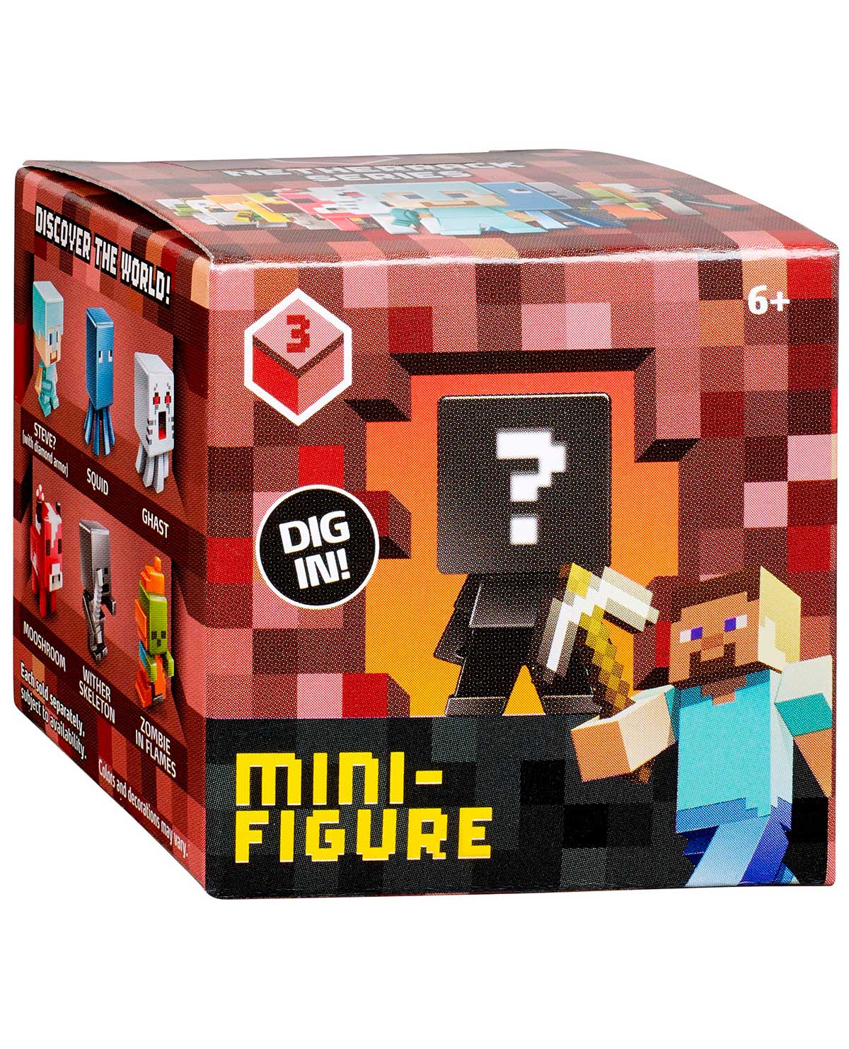 ¡Adéntrate en el mundo de Minecraft como nunca antes! “Enterrada” dentro de cada paquete te espera una minifigura de Minecraft: ¡nunca sabrás qué figura encontrarás!