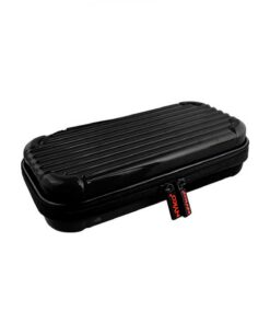 Un asa en el exterior del estuche permite transportarlo fácilmente. Dentro del estuche hay un soporte para accesorios para guardar cables de carga adicionales u otros accesorios. Se pueden almacenar hasta 8 juegos en el portatarjetas de juego incorporado para facilitar el acceso.