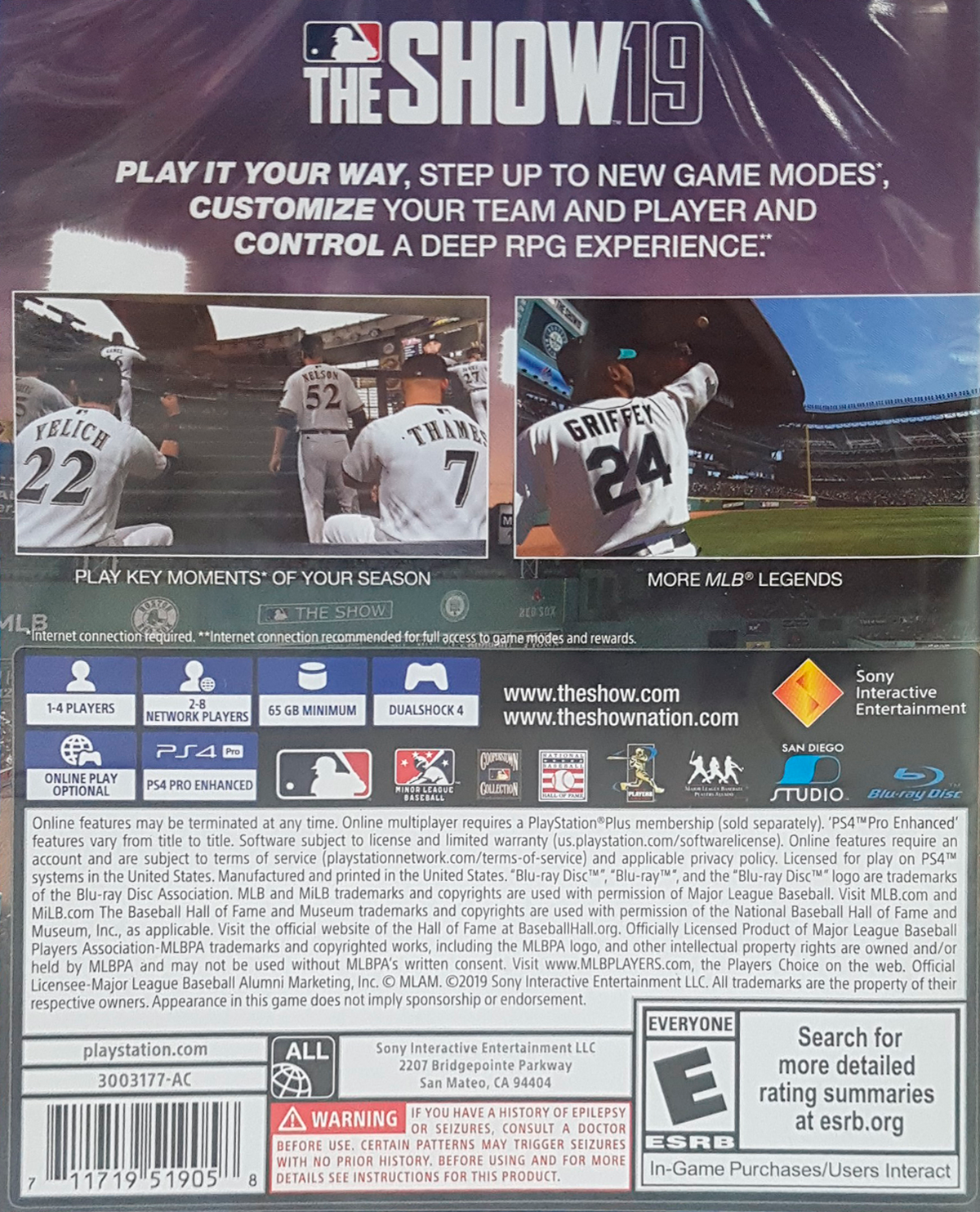 ¡Vuelve The Show! MLB® The Show™ 19 te ofrece lo mejor del béisbol. Juega al pasatiempo favorito de los Estados Unidos a tu manera, con nuevos modos de juego, creación de equipos expandida y personalización de jugadores, además de una extensa experiencia de juego de rol a medida. Crea tu propio jugador y sube de rango en MLB o juega contra otros jugadores como las estrellas y leyendas más grandes del béisbol. Feroz competencia online*, emocionante acción de juego de rol, gameplay a la velocidad del rayo: The Show 19 lo tiene todo.