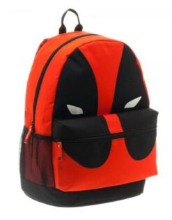Mochila Roja y negra con la máscara de Deadpool.
