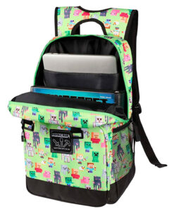 Lleva el mundo cuadrado de Minecraft al salón de clases o a cualquier parte con esta mochila edición especial, con licencia oficial de Minecraft llevarás un estilo único, la mochila tiene dos bolsas una pequeña en la parte frontal para guardar cosas esenciales, mientras que la bolsa grande podrás guardar cuadernos, carpetas o todo lo que te imaginas, contiene una separación de lap para tu mayor comodidad.
