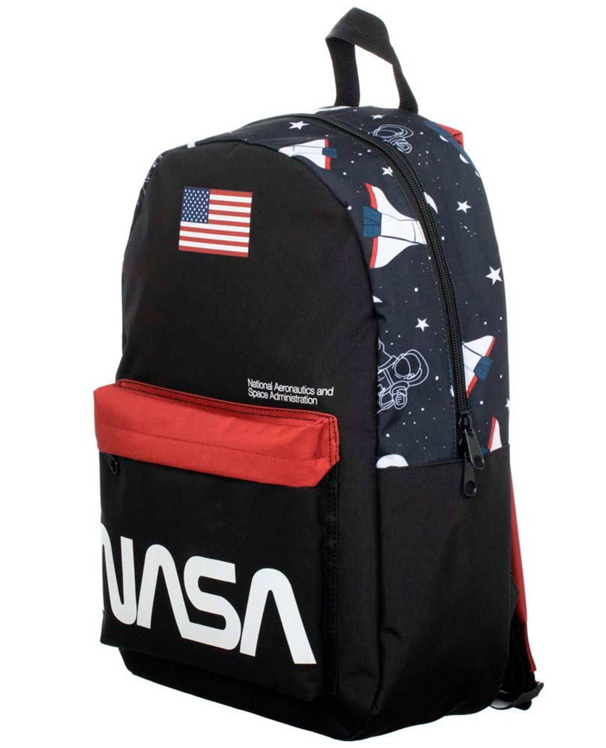¡Explora las estrellas con esta increíble mochila de la NASA! El diseño muestra naves espaciales, así como el espacio exterior.
