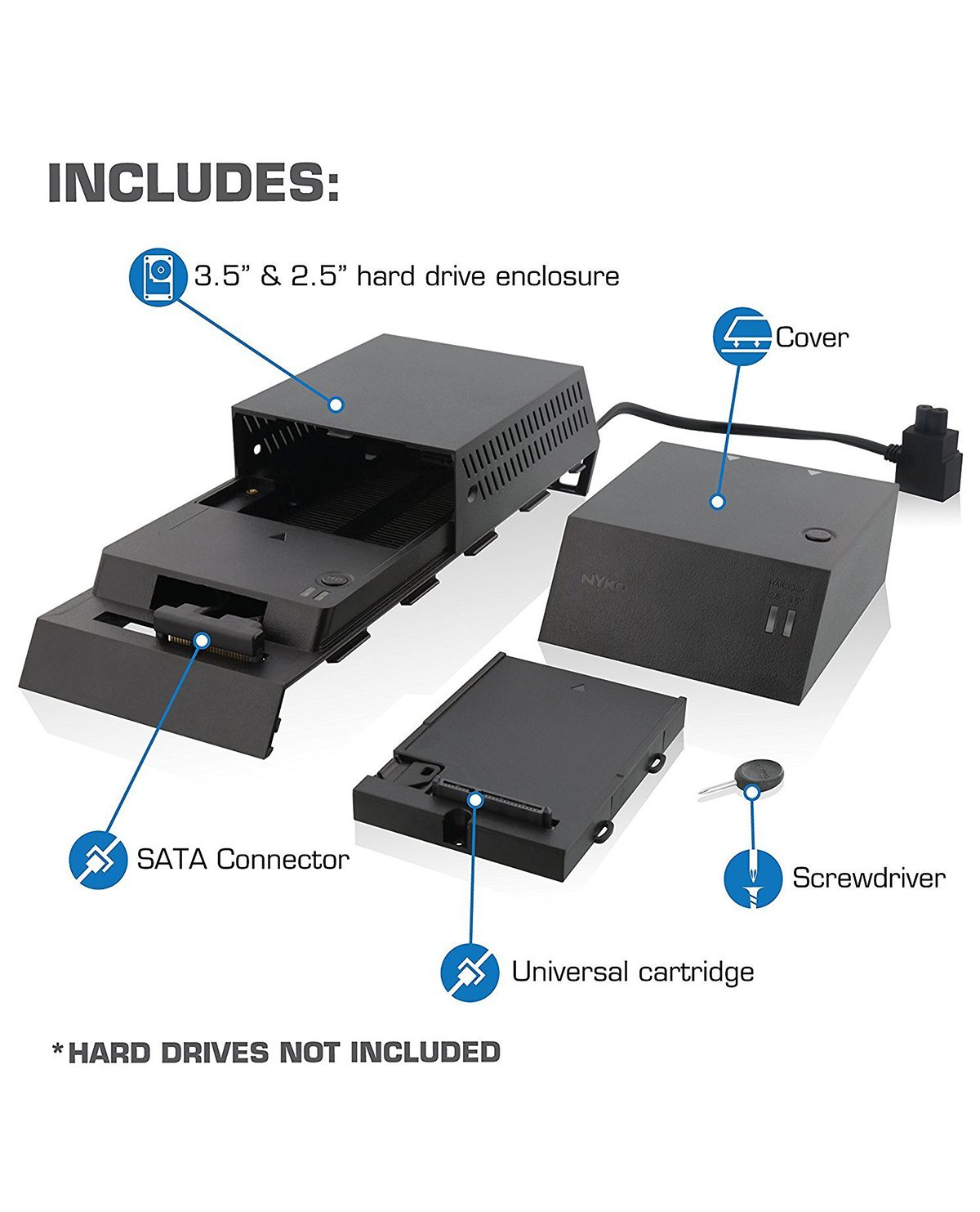 Esto sustituirá a la parte de la placa frontal estándar, pero en realidad no contiene una unidad de almacenamiento integrada, sin embargo, permite el uso de unidades de 3,5 “en comparación con las unidades de 2,5”, como la que ya está en la PS4. Con esto, usted puede intercambiar hacia fuera la impulsión de 2.5 “para uno del 3.5” tamaño que es más barato.