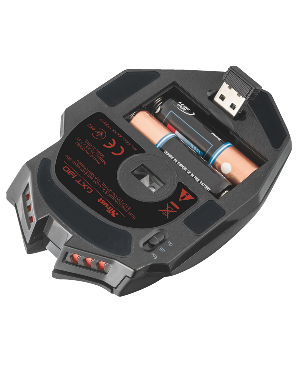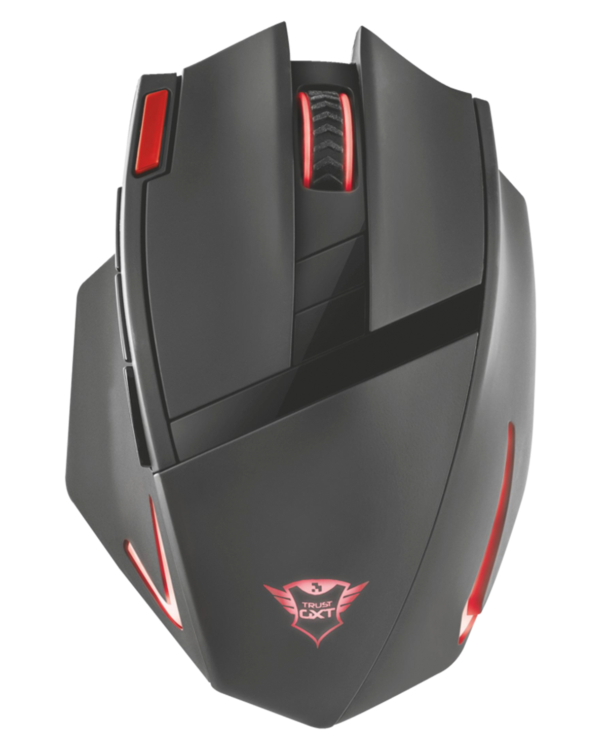 El ratón inalámbrico para juegos GXT 130 Wireless Gaming Mouse de Trust tiene 9 botones de respuesta, iluminación por LED y botones de selección de velocidad.