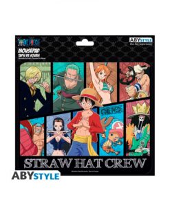 Es un mousepad rectangular lleno de color y con diseño genial, protagonizado por los principales personajes de One Piece y los Piratas del Sombrero de Paja: : Luffy, Nami, Sanji, Zoro, Nico Robin, Tony Tony Chopper… junto al logo oficial de este anime, y todo ello serigrafiado con una calidad enorme.