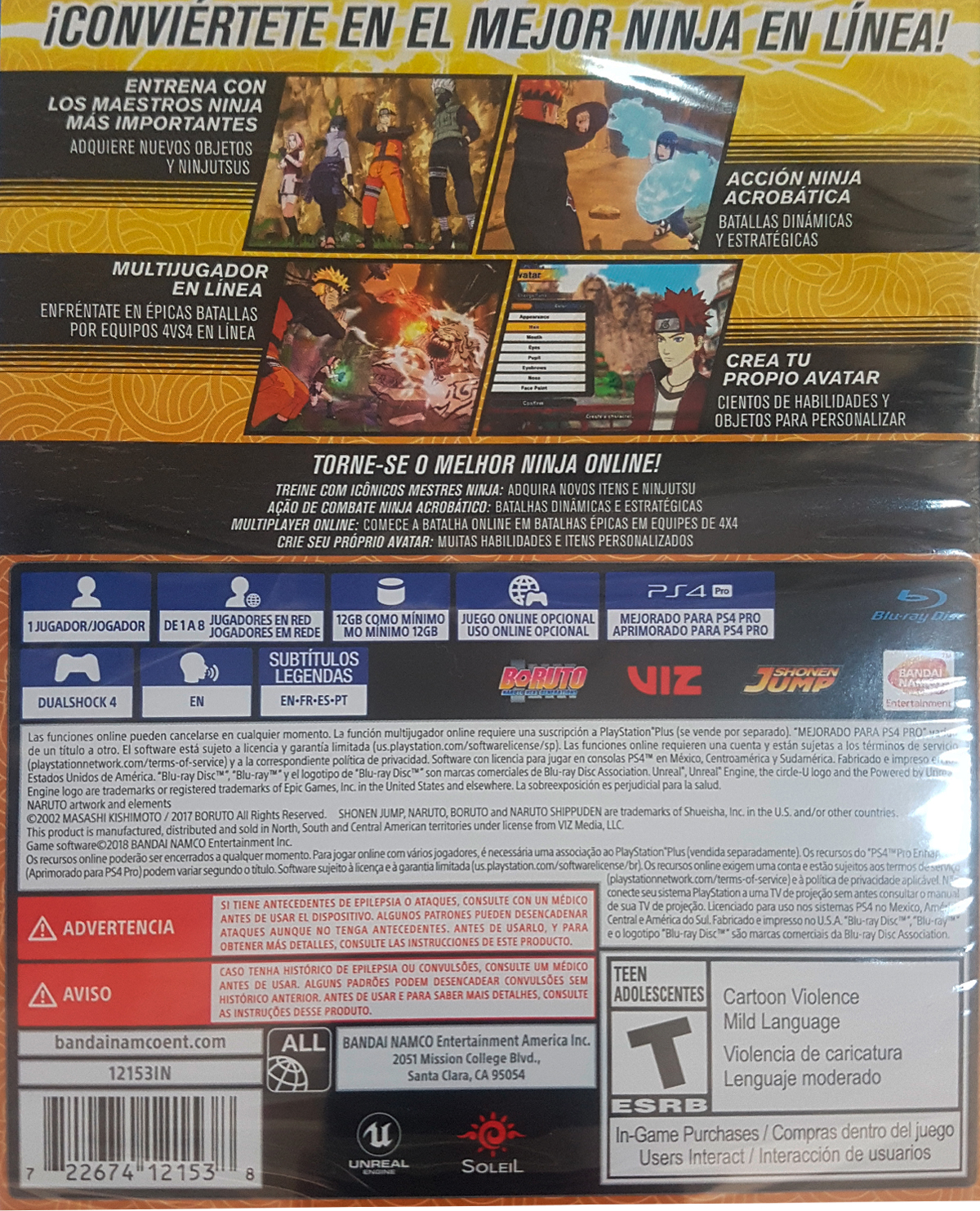 La franquicia de Naruto vuelve de la mano de una experiencia nueva en NARUTO TO BORUTO: SHINOBI STRIKER. ¡Este juego nuevo permite que los jugadores luchen en equipos de cuatro para competir contra otros equipos en línea! Gráficamente, SHINOBI STRIKER también se ha creado desde cero con un estilo gráfico completamente nuevo. ¡Lidera a tu equipo y lucha en línea para ver quiénes son los mejores ninjas!