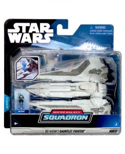 Une a los clanes de Mandalore con el Gauntlet Starfighter de STAR WARS Micro Galaxy Squadron Bo-Katan. Con detalles increíbles y escalas auténticas, este vehículo de 5" pulgadas (12 cm) está basado en el caza de transporte que Bo-Katan Kryze voló en su búsqueda para recuperar el DARKSABER.