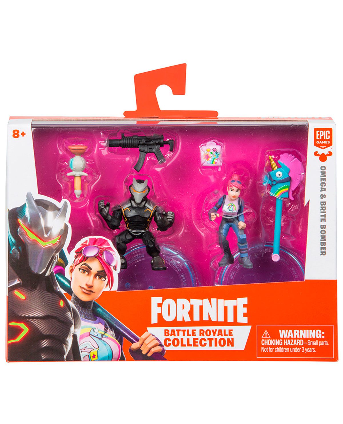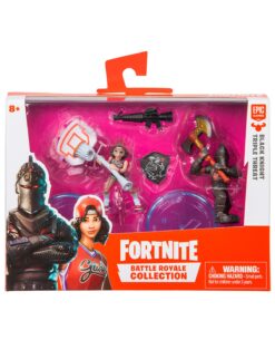 Basada en el fenómeno cultural, la Battle Royale Collection es una auténtica línea de fíguras, vehículos y sets de juego de Fortnite. Cada uno de estos paquetes incluye armas intercambiables, accesorios y base.*