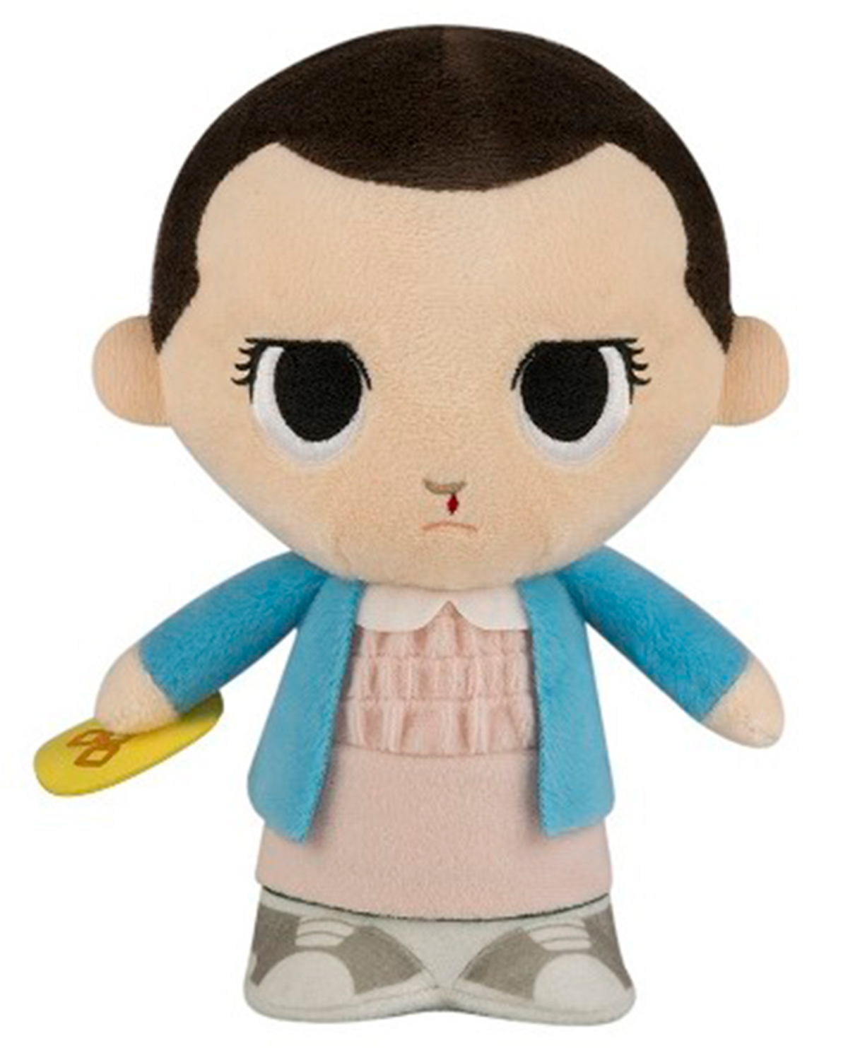 Pero no es un humano cualquiera, Eleven tiene habilidades psíquicas, telequinesis y parálisis musculas, Eleven es tan poderosa que Funko hizo un peluche de nuestra querida 011, te fascinará tanto que no dudarás en ayudarla.