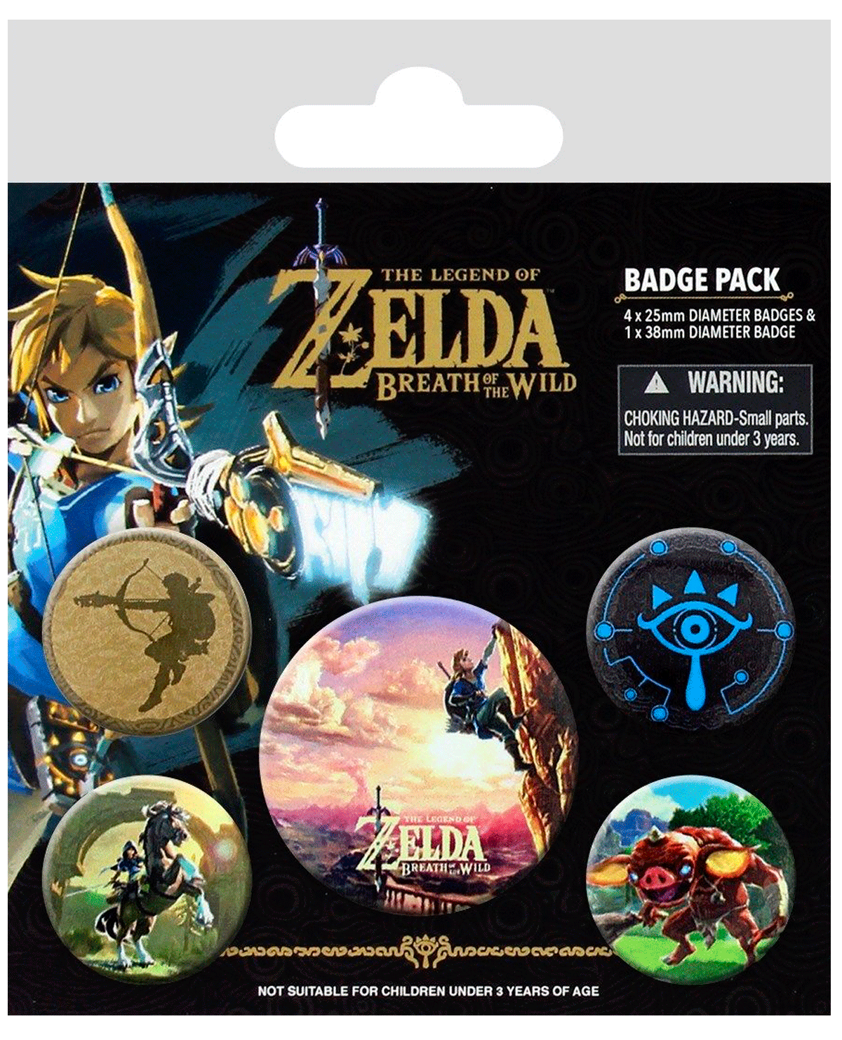 Contiene cinco pines con diseños diferentes que van desde Link hasta Epona.