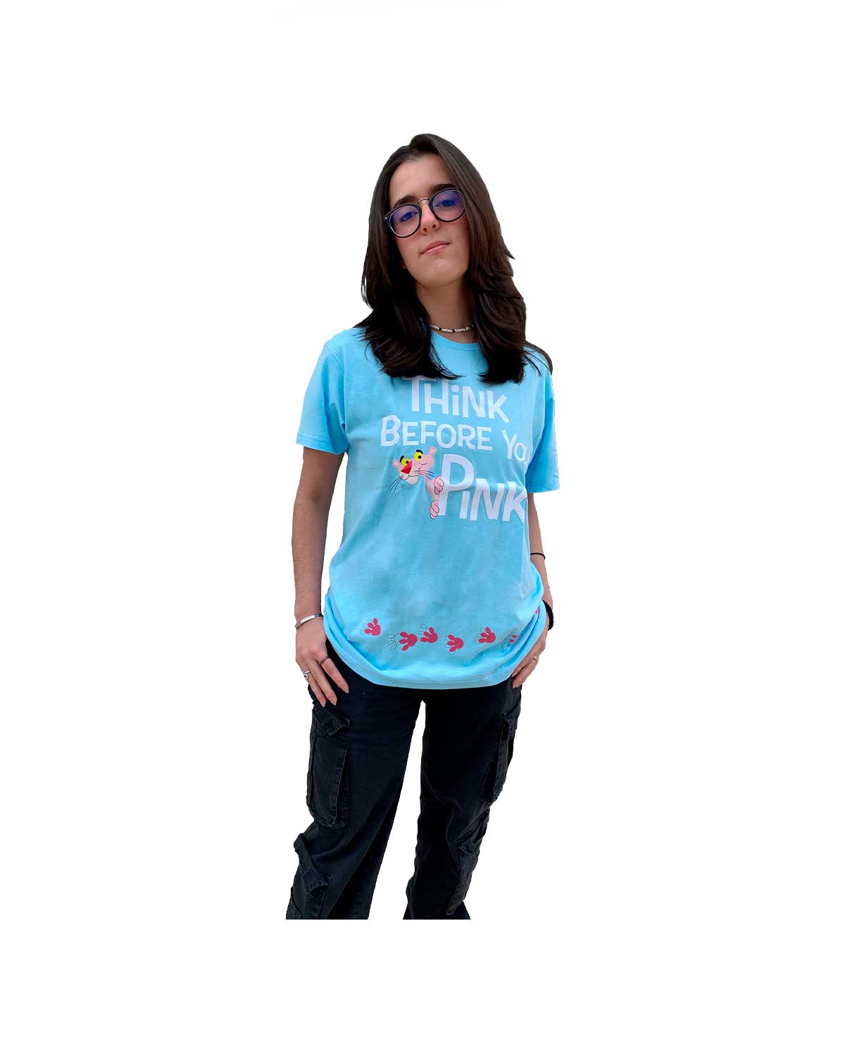 PLAYERA AZUL MGM PINK PANTHER THINK BEFORE YOU PINK MEDIANA