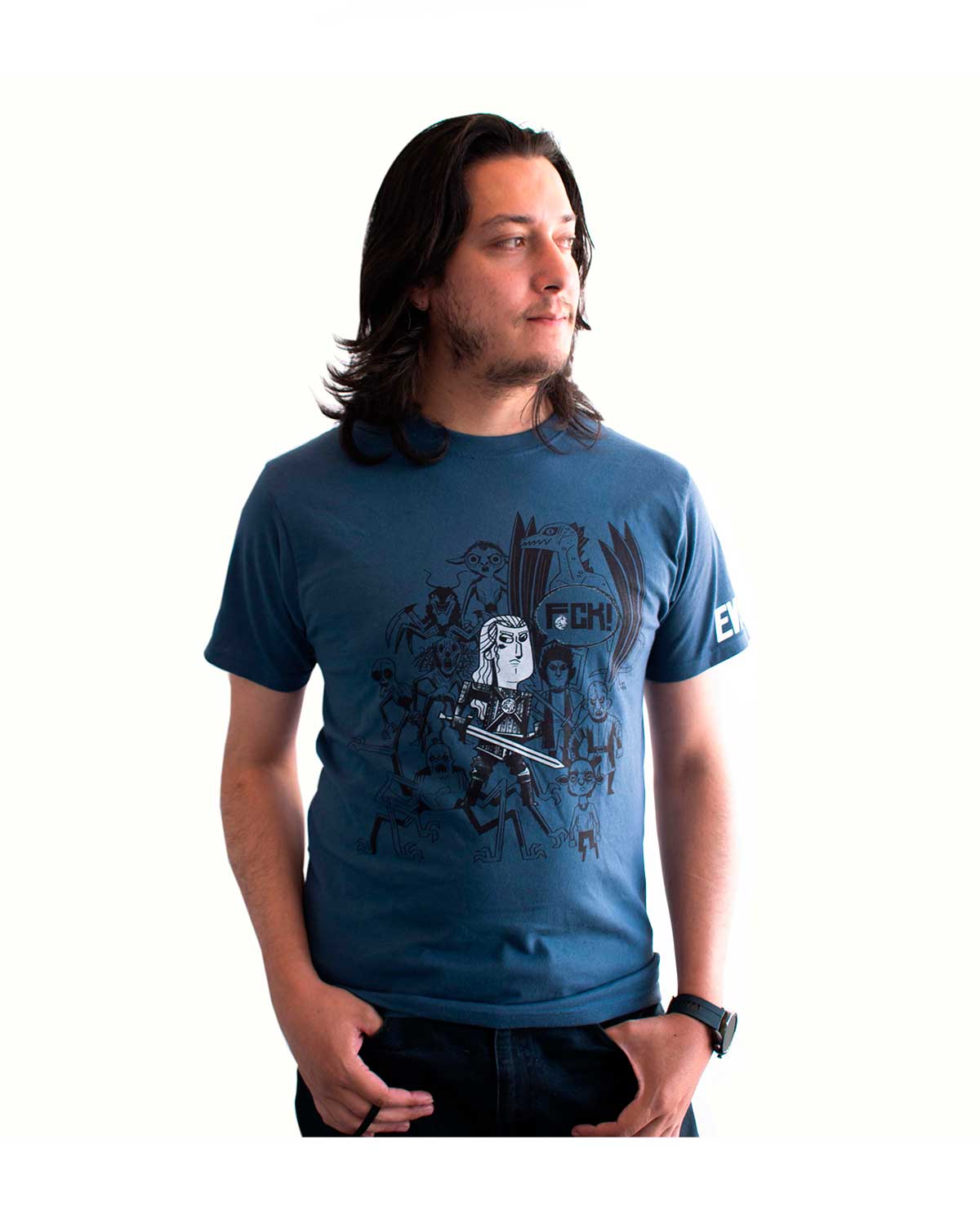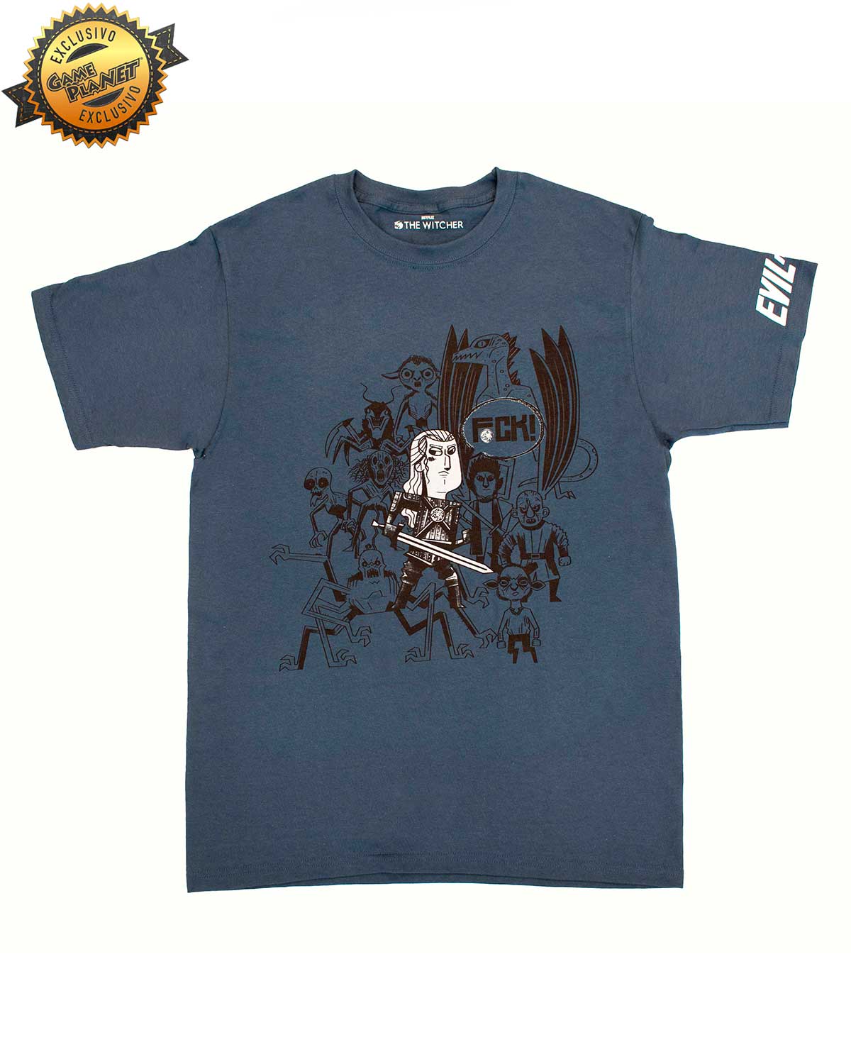 PLAYERA AZUL THE WITCHER EVIL IS EVIL MEDIANA