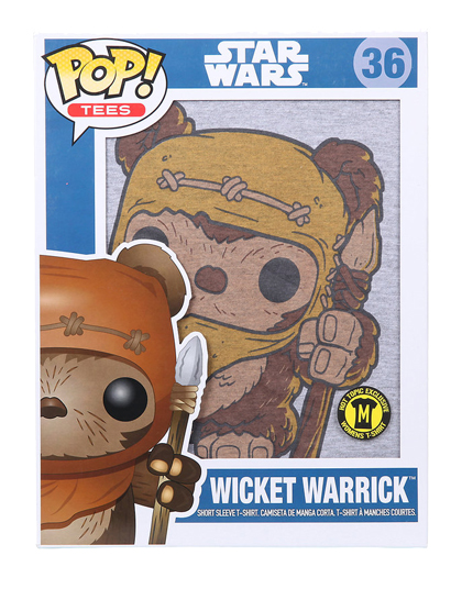 El jefe de la Aldea del Árbol Brillante en la Luna boscosa de Endor, Wicket Wystri Warrick un ewok que resultó ser de lo más valiente, está disponible en su versión de playeras POP, la línea que conoces muy bien de figuras de vinil está en Gameplanet…¡Pero en playeras! Ponte a la moda con las playeras de Funko y arma tu colección.