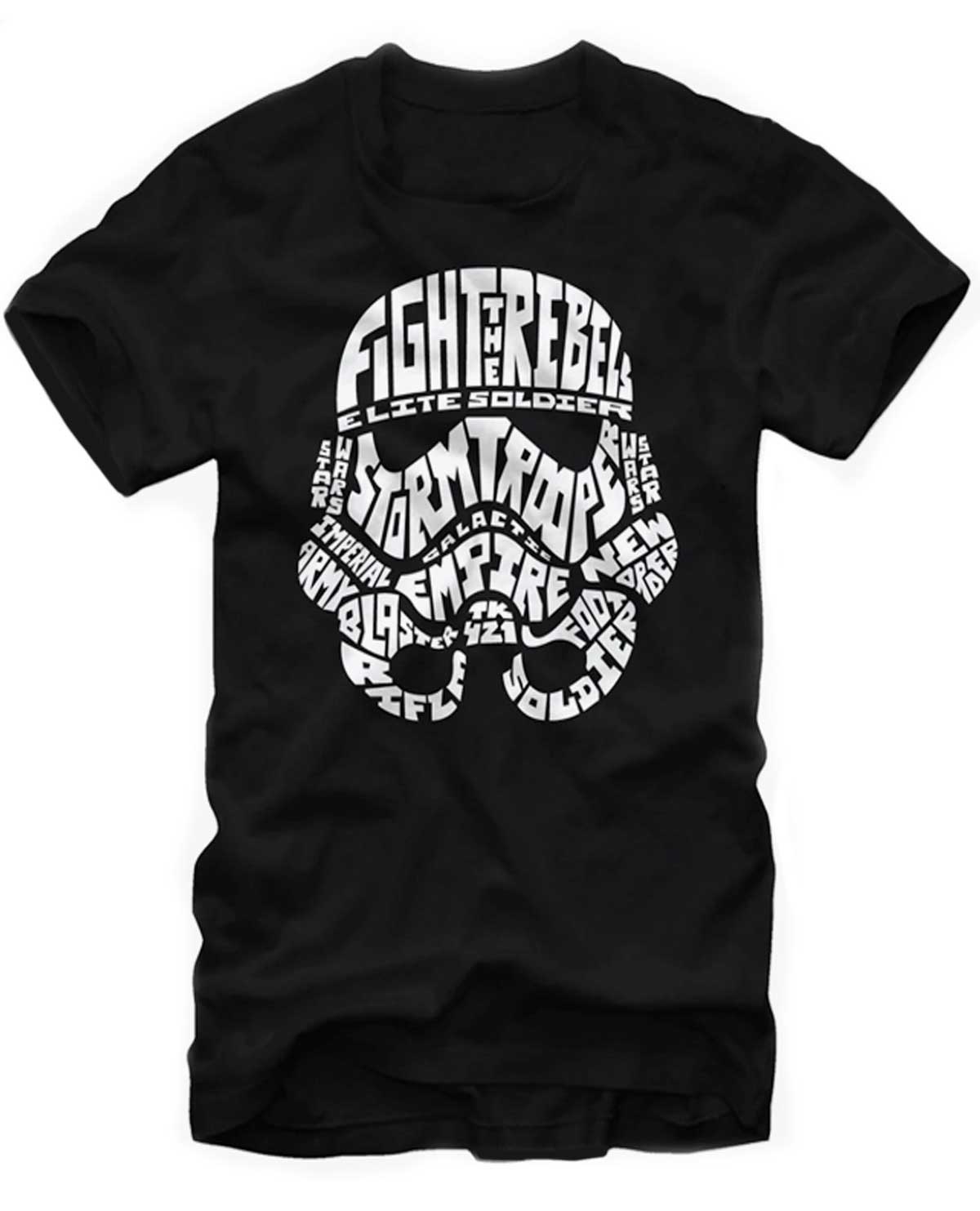 Esta playera de Star Wars es única, presenta un casco de Stormtrooper formado por palabras que describen a casí todos los famosos soldados de infantería del Imperio Galáctico.