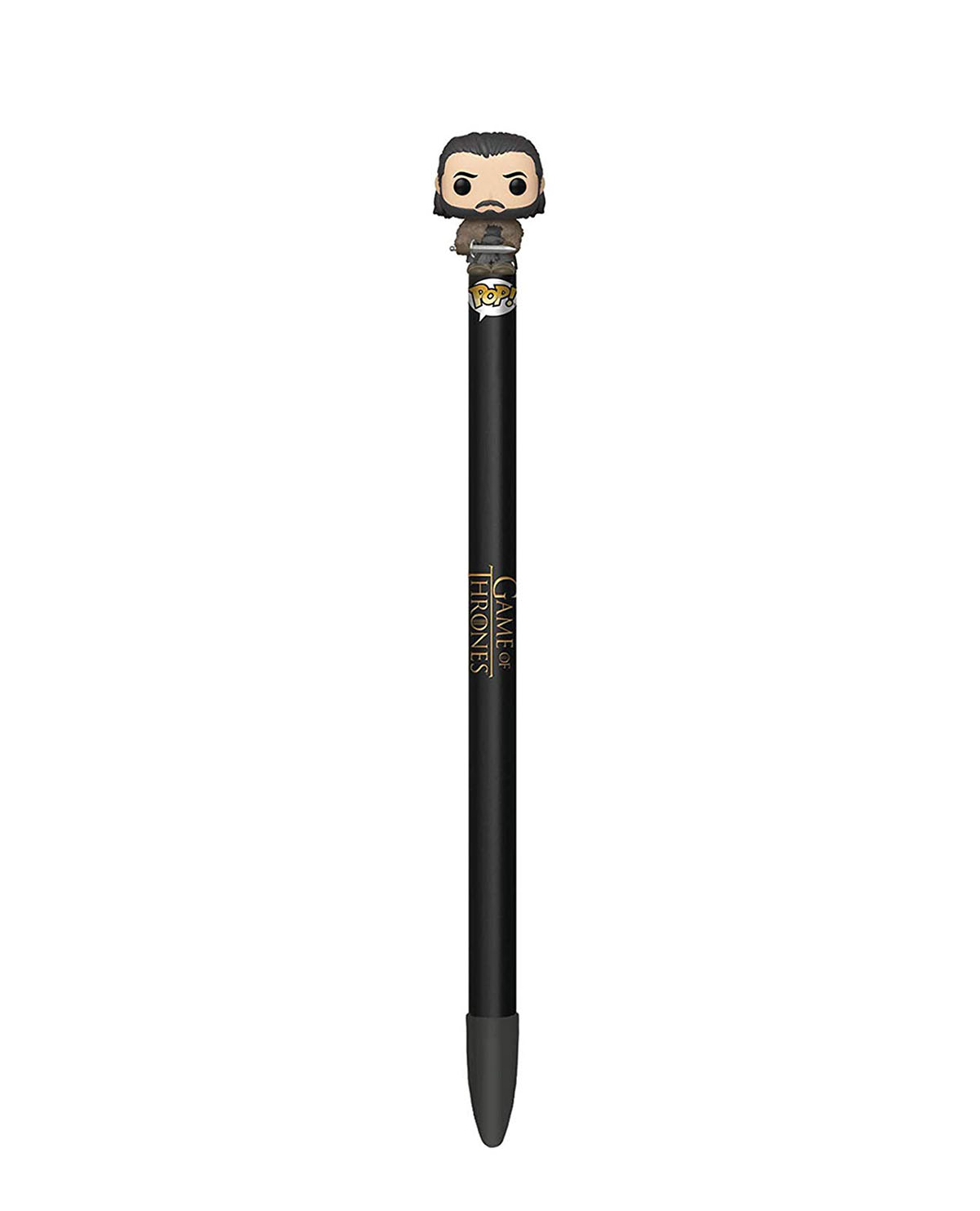 En la parte superior de esta pluma se encuentra una mini figura de Jon Snow.