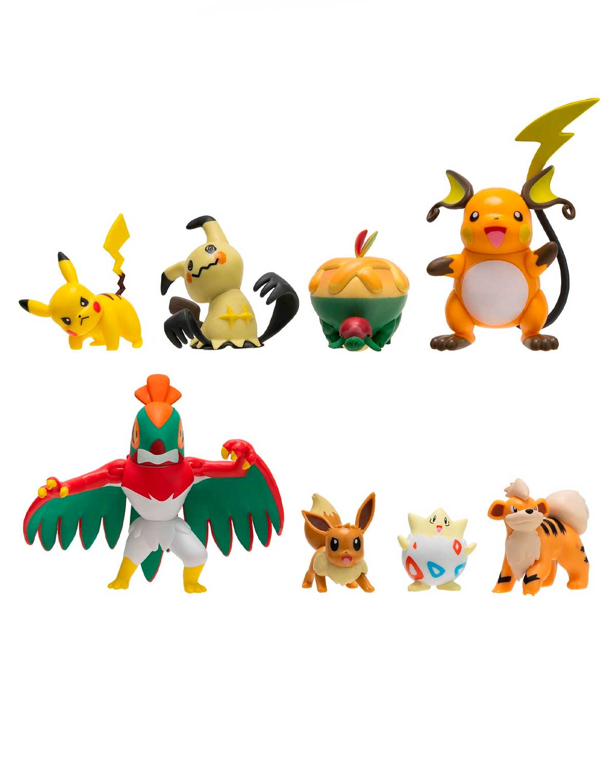 El juego incluye a Pikachu, Eevee, Appletun, Growlithe, Mimikyu, Togepi, Raichu y Hawlucha. Cada figura de 5 cm es compatible con Pokémon Clip 'N' Go Poké Ball, Carry Case Playset y Surprise Attack Game. Todos tienen detalles auténticos y parecen sacados directamente de la serie animada Pokémon.
