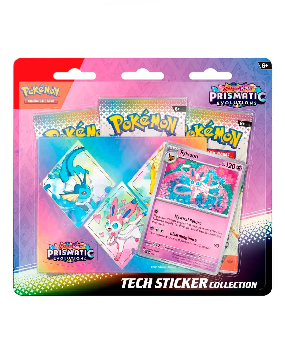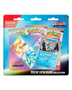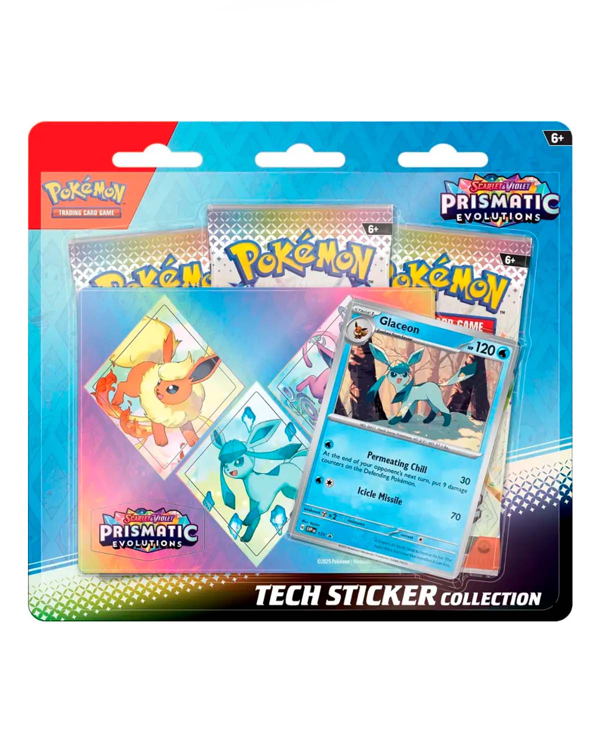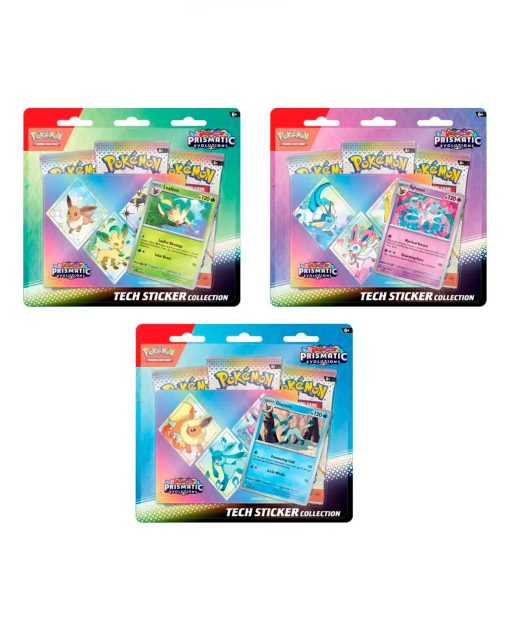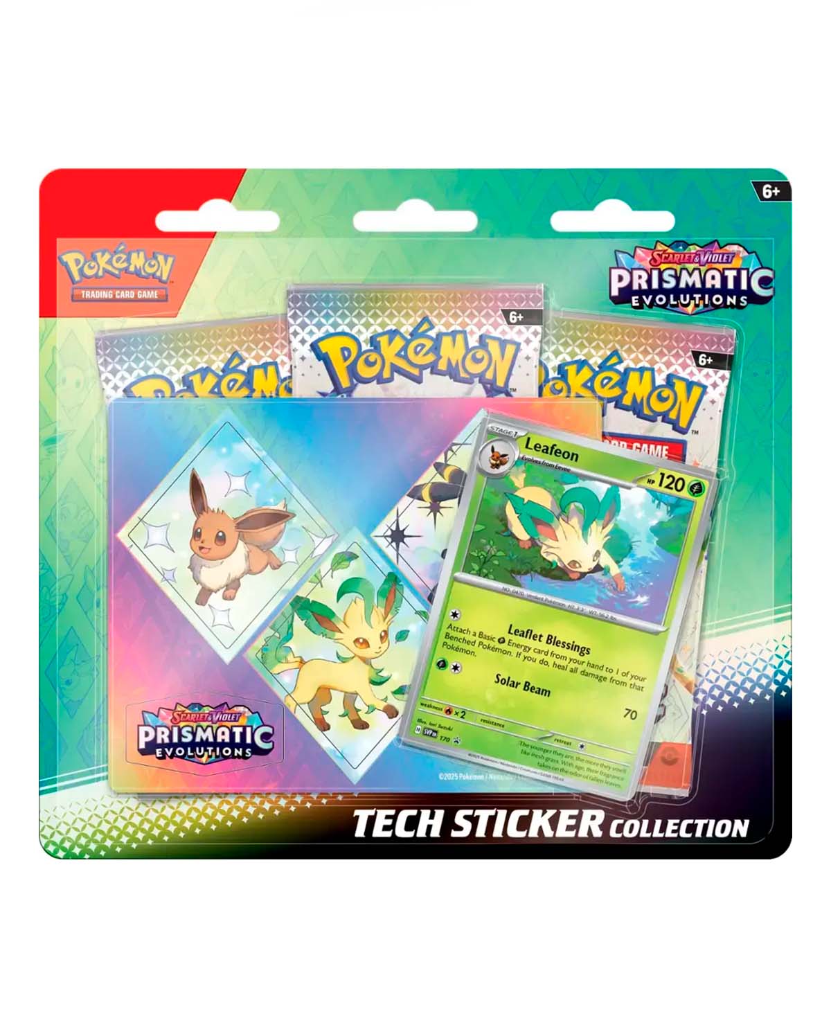 Recibirás al azar un set de cartas coleccionables de Pokémon TCG: Scarlet & Violet—Prismatic Evolutions Tech Sticker Collection, protagonizado por uno de los tres Pokémon evolucionados de Eevee: Leafeon, Glaceon o Sylveon. Cada una de estas Evoluciones no solo destaca por su apariencia única, sino también por sus habilidades estratégicas dentro del juego.