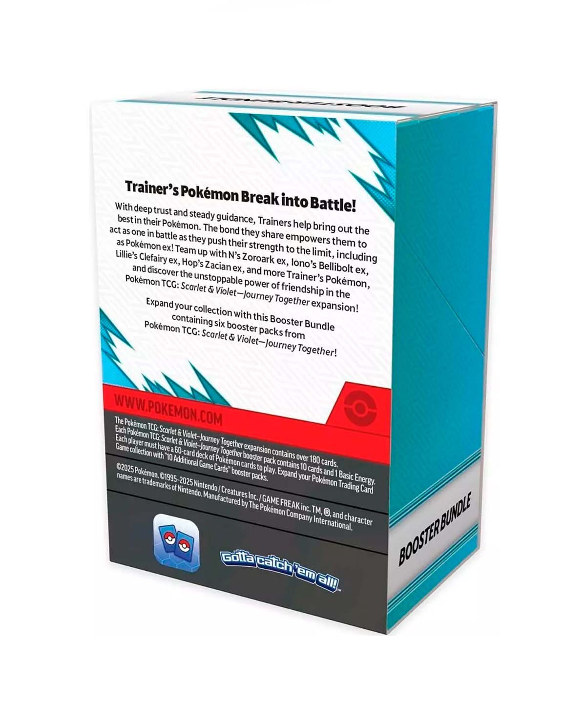 Únete a Zoroark ex de N, Bellibolt ex de Iono, Clefairy ex de Lillie, Zacian ex de Hop y muchos más en esta emocionante colección que celebra el trabajo en equipo y la conexión única entre Entrenador y Pokémon. ¡Descubre el poder imparable de luchar juntos!