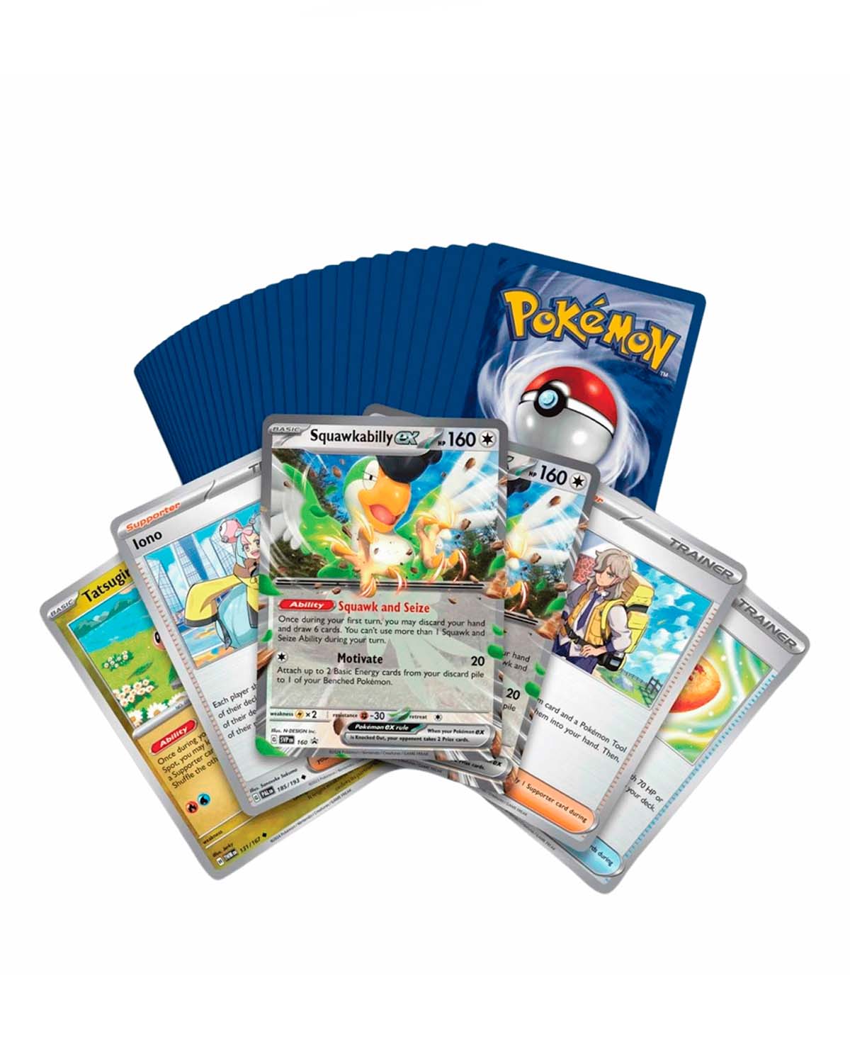 - Más de 50 cartas útiles, incluyendo cartas de Entrenador, 4 Energías Especiales y 6 Pokémon, como 2 copias de Squawkabilly ex.