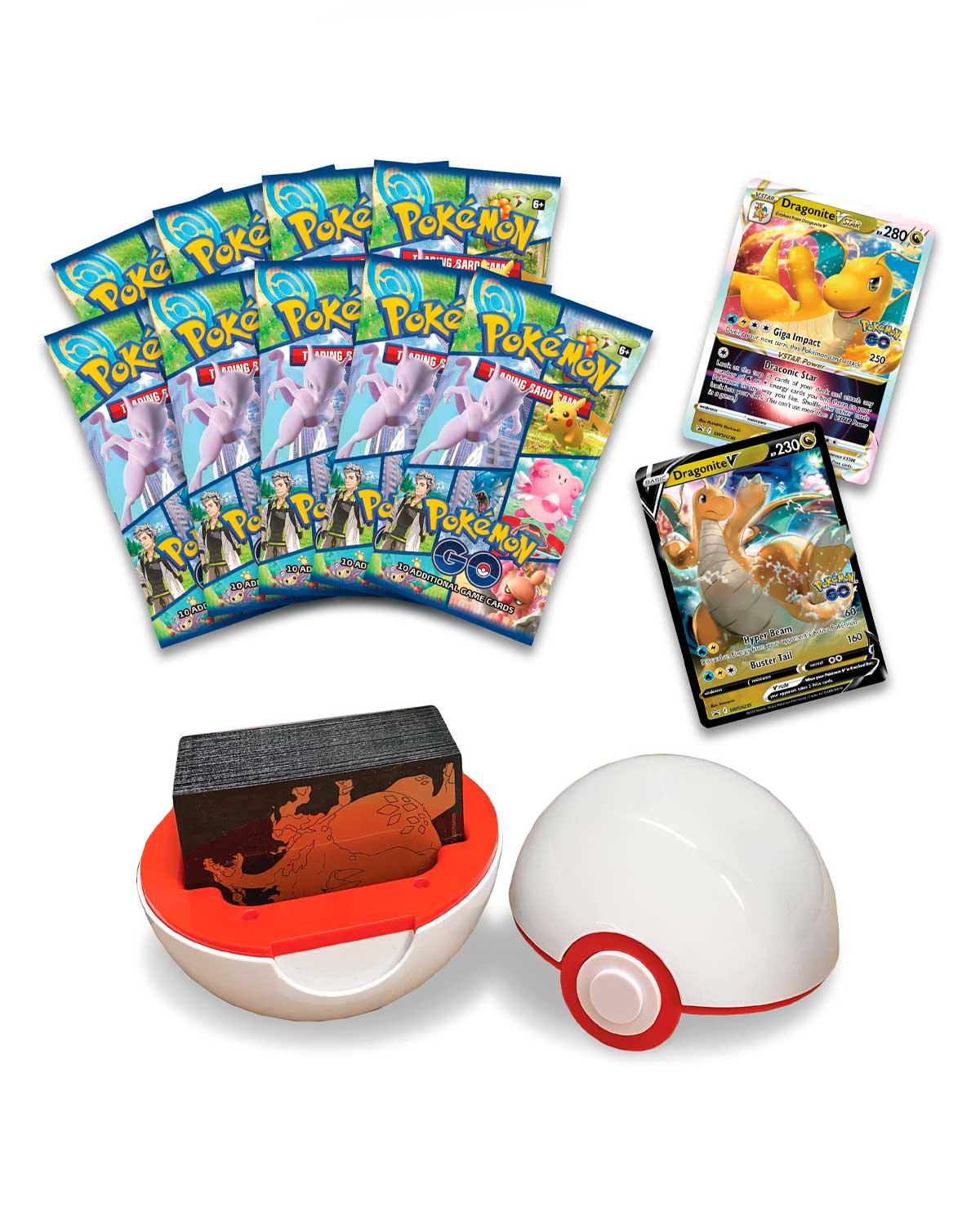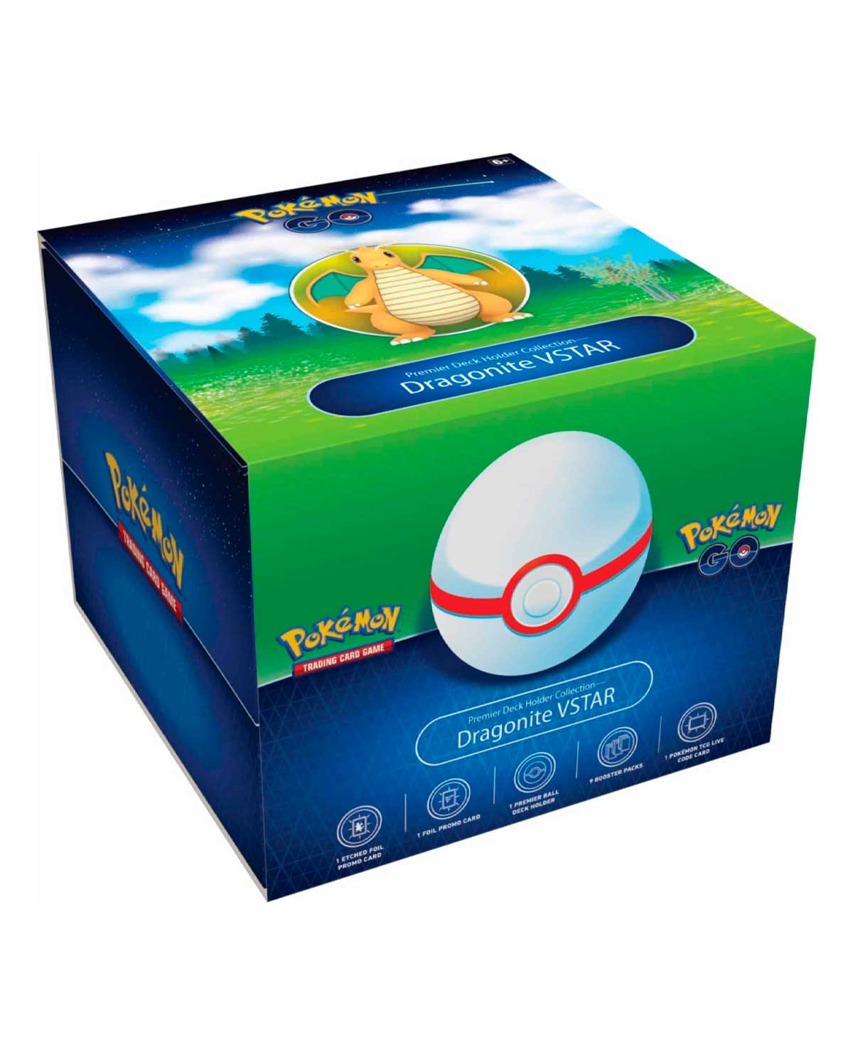 Una batalla épica de incursión trae recompensas poderosas: ¡Un poderoso Dragonite VSTAR para tu colección y un soporte Premier Ball para tu mazo favorito! Con un poder VSTAR que comparte mucha energía con tus Pokémon, Dragonite VSTAR se eleva a alturas estratégicas y lo recibirás junto con Dragonite V en esta colección especial que presenta la expansión Pokémon GO de JCC Pokémon.