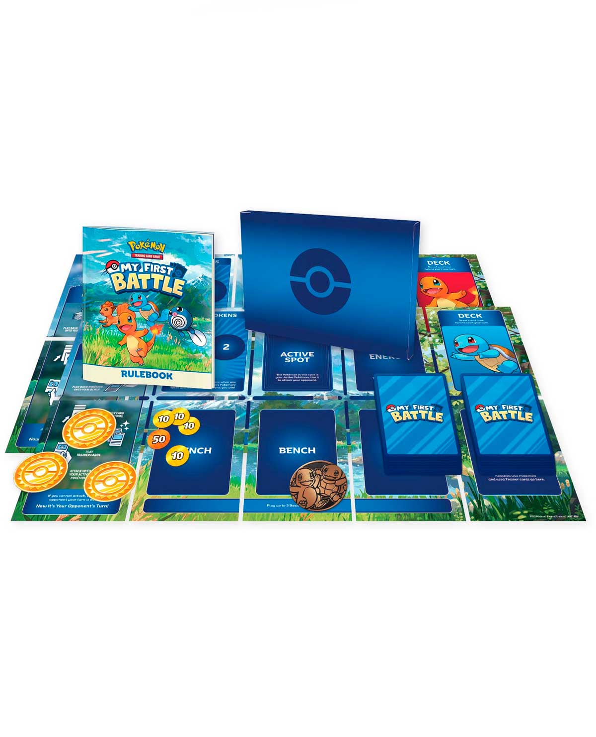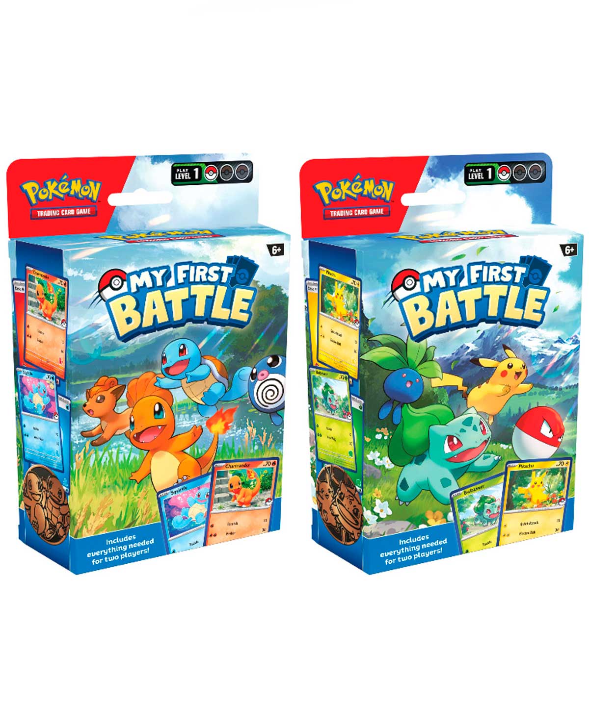 Si siempre has querido jugar al TCG Pokémon con familiares y amigos, el set My First Battle es la introducción perfecta. Con un juego optimizado y una guía infalible, estarás listo para entrenar y luchar. ¡Todo lo que necesitas para dos jugadores está incluido!
