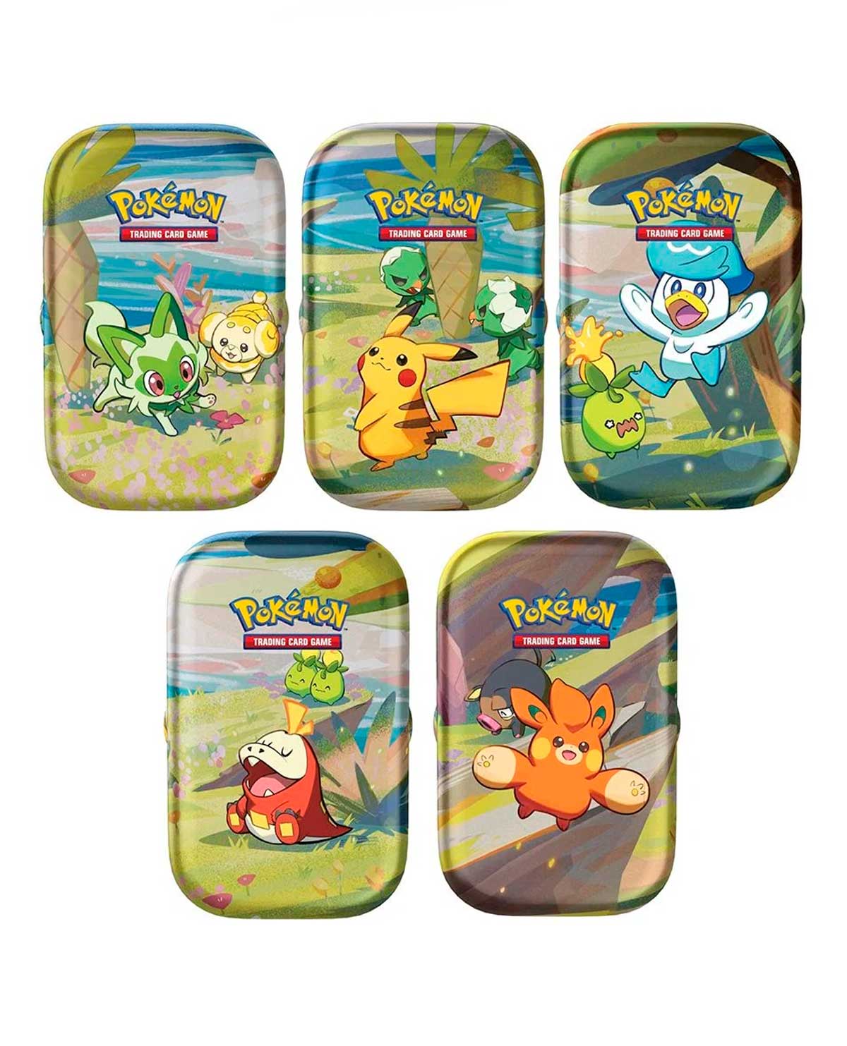 - Una tarjeta de arte Pokémon que muestra el arte de esta mini lata: ¡Puedes coleccionar y combinar los 5!