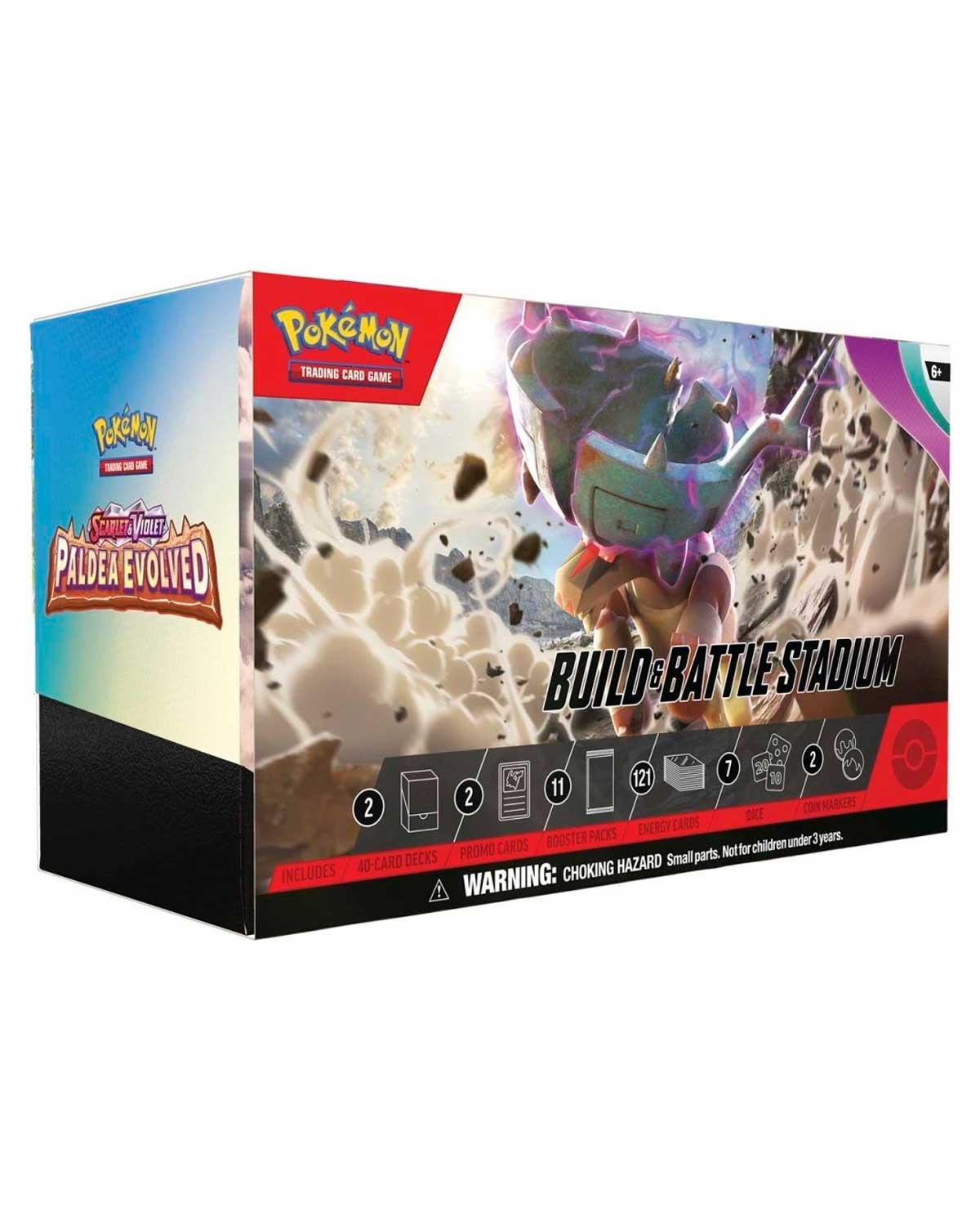 ¡Construye dos mazos con un amigo y luego juega de inmediato! Este Pokémon TCG: Scarlet & Violet – Paldea Evolved Build & Battle Stadium contiene un enorme juego de cartas, incluidas dos cajas Build & Battle. Cada Build & Battle Box contiene cuatro paquetes de refuerzo y un mazo de 40 cartas que incluye una carta de papel de aluminio exclusiva.