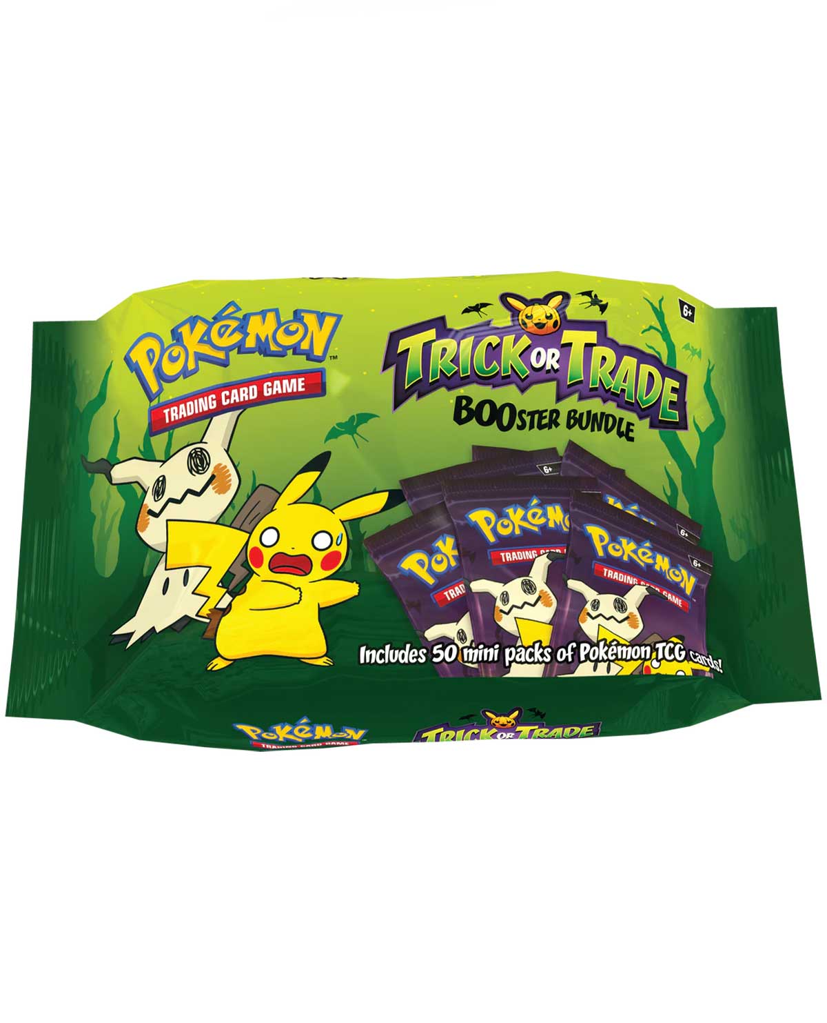 ¡Comparte diversión y emoción Pokémon en la noche más espeluznante del año con un paquete de paquetes BOOster! En su interior encontrarás 50 minipaquetes, cada uno con tres cartas coloridas del TCG Pokémon.