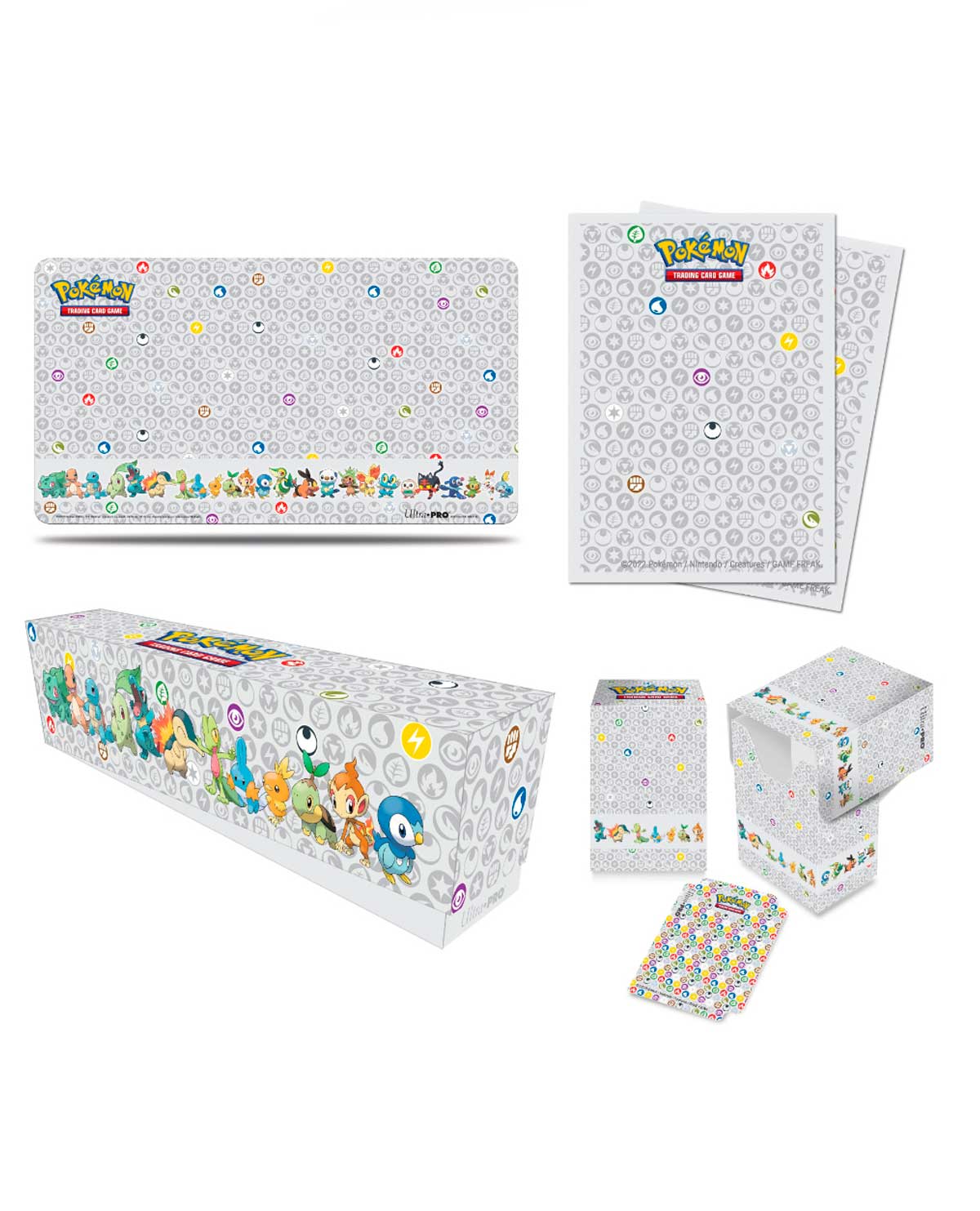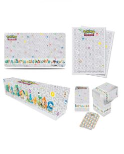 Este paquete especial incluye un tapete de juego, 65 fundas Deck Protector y una Deck Box con un divisor de cubierta a juego. Todos los accesorios están empacados en una caja de almacenamiento de tarjetas temática que tiene capacidad para 700 tarjetas en fundas Ultra PRO.