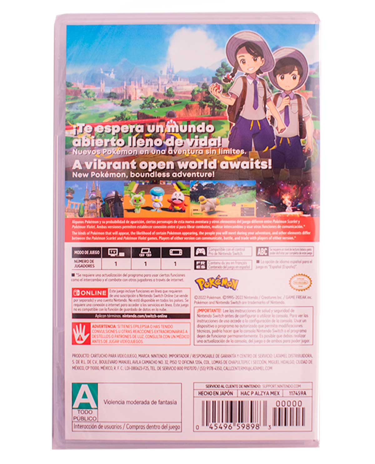 Atrapa, combate y entrena Pokémon en la región de Paldea, una vasta tierra llena de lagos, cimas montañosas, páramos, poblaciones pequeñas y grandes ciudades. Explora un mundo completamente abierto a tu propio paso y recorre a través de la tierra, el agua y el aire a lomos del Pokémon legendario Koraidon, que puede cambiar de forma en Pokémon Scarlet, o sobre el Pokémon legendario Miraidon, que puede cambiar de forma en Pokémon Violet. Elige entre Sprigatito, Fuecoco o Quaxly para que sea tu primer compañero Pokémon antes de lanzarte en tu aventura a través de Paldea.