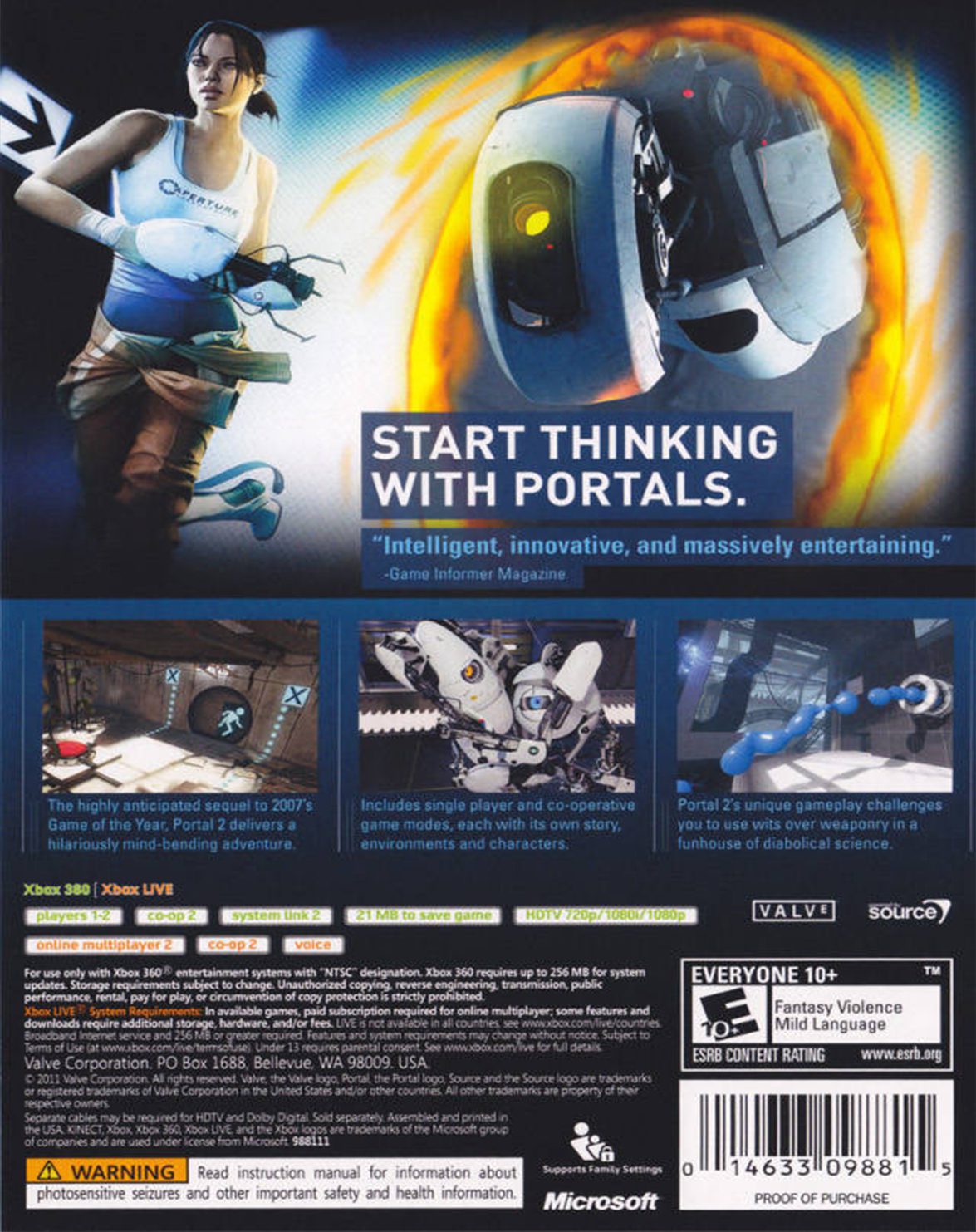 Portal 2 es un juego de acción y puzles en primera persona. Volveremos a protagonizar a una misteriosa mujer llamada Chell. 200 años luego de los sucesos del primer juego, Chell sigue atrapada en los laboratorios de Aperture Science. En esta ocasión, GLaDOS, la inteligencia artificial encargada de administrar el lugar y nuestro enemigo principal en el primer título, volverá a hacer acto de presencia, aunque esta vez, será nuestra aliada, con el único objetivo de escapar del lugar. Tendremos un arma capaz de abrir portales, uno de entrada y otro de salida; y ellos deberán ser la clave para solventar las diferentes situaciones. Más bien, serán nuestro único aliado.