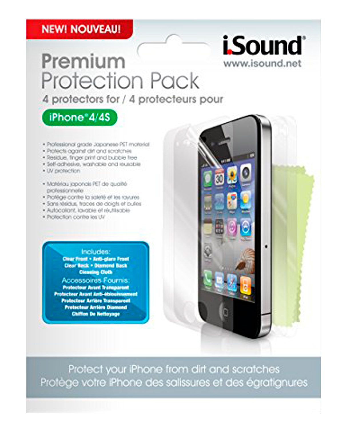 El paquete de protección premium para Iphone 4, protege tu teléfono de cualquier clase de rayadura.