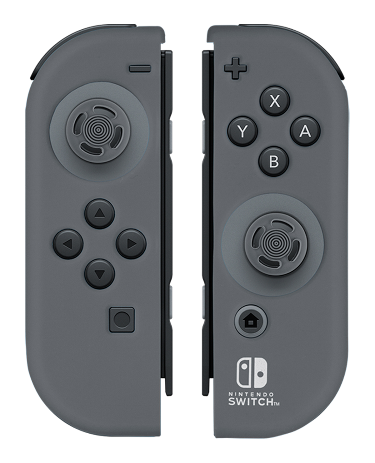 UN JUEGO DE PROTECCIONES DE GEL DE SILICONA PARA JOY-CON Y TAPAS DE ANALÓGICOS CON DISEÑO ERGONÓMICO EN TONO GRIS