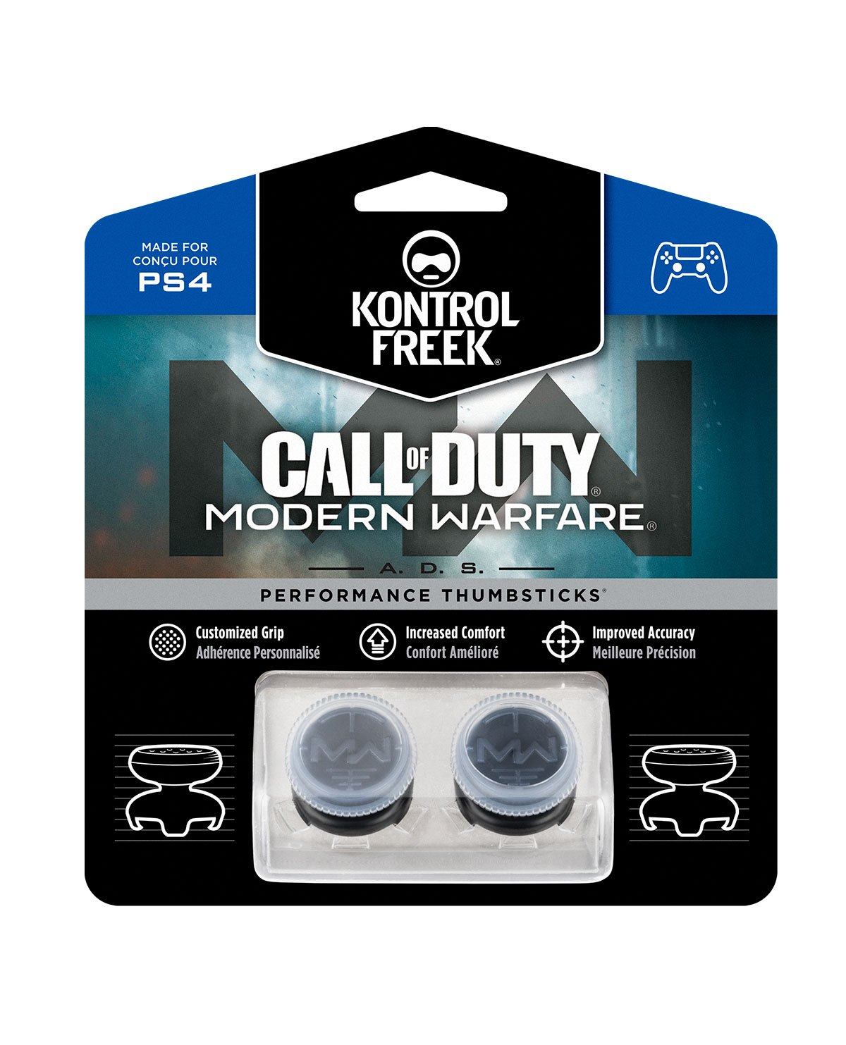 ¡Únete a los reclutas y entrena como nunca antes con los protectores de goma Call of Duty: Modern Warfare – A.D.S! Estos thumbsticks de alto rendimiento cuentan con un diseño original de Modern Warfare en un material transparente único.*