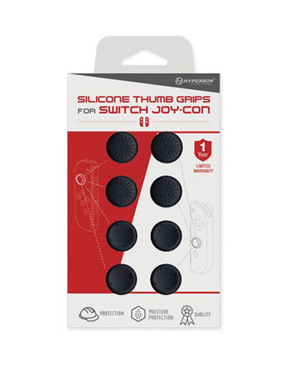 Las tapas Hyperkin de silicón para los sticks del Joy-Con mejoran el agarre e impiden el deslizamiento durante un gameplay intenso. Las tapas se ajustan fácilmente a los joysticks y son cómodas de usar.