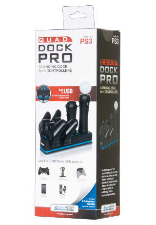 El Quad Dock Pro te permite cargar hasta 2 controles Sony SIXAXIS o DUALSHOCK 3 , un control move de PlayStation y 1 control de navegación Playstation al mismo tiempo.