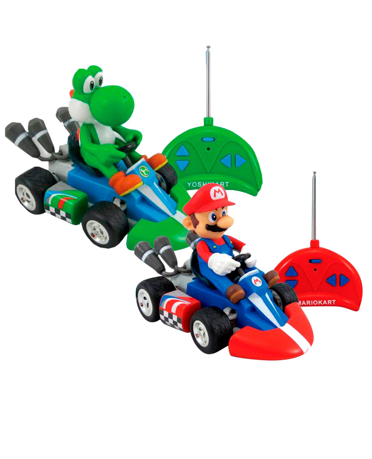 Minu-autos control remoto con los personajes de la serie Super Mario Bros. Incluye dos por paquete, baterías y control.